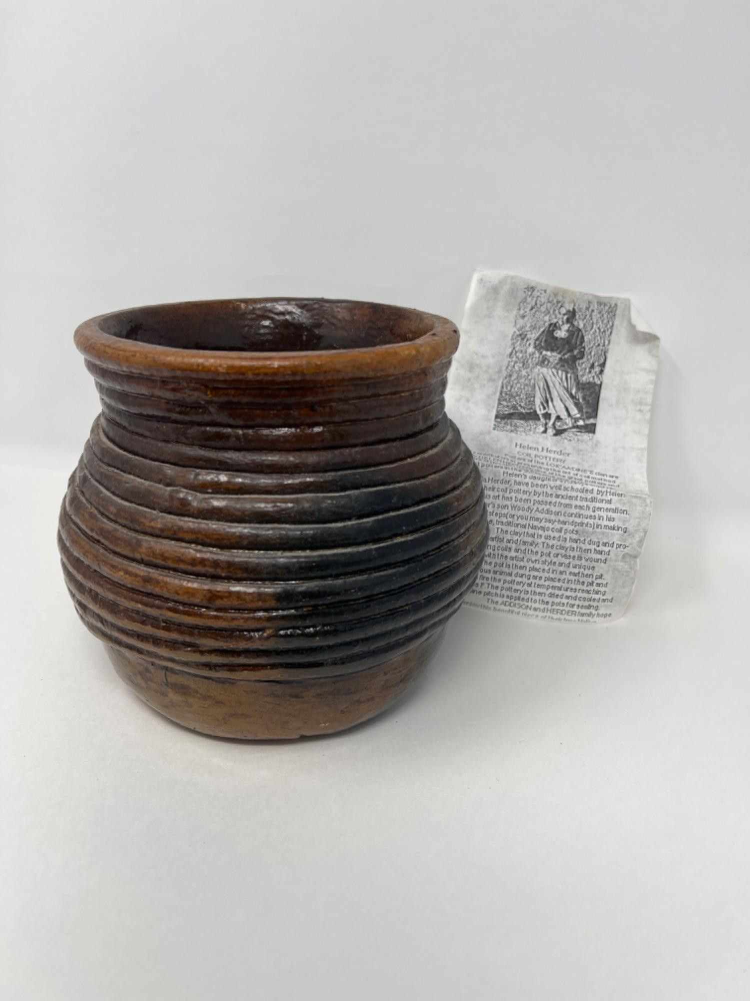 Lot # 199 - LOK’AA’DINE’E Clan Hand Molded Clay Coil Pottery - Helen Herder