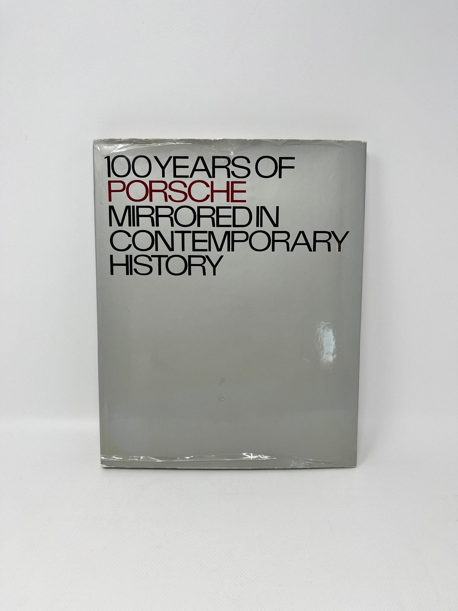 1975 - 100 Years of Porsche Mirrored in Contemporary History Book Dust jacket clear plastic is peeling and has general wear. Book appears to be in great condition. Has little note detailing it was a door prize from 1983.