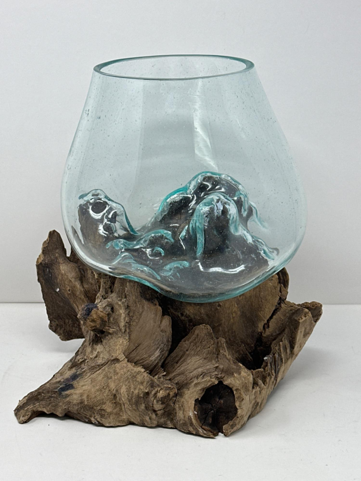 Lot # 135 - Custom Molten Glass Vase on Driftwood