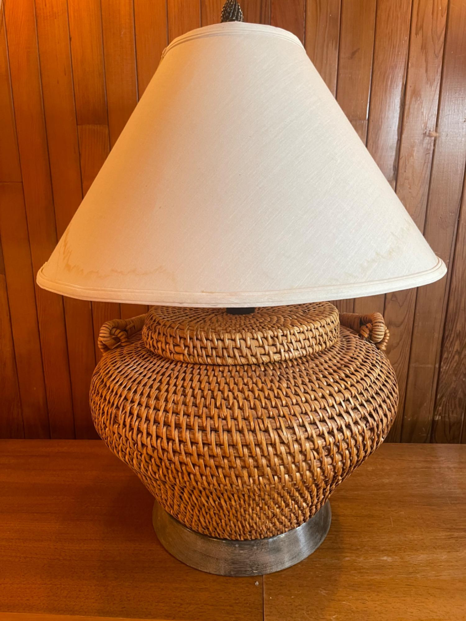 Lot # 4 - Vintage Large Rattan Basket Style Table Lamp