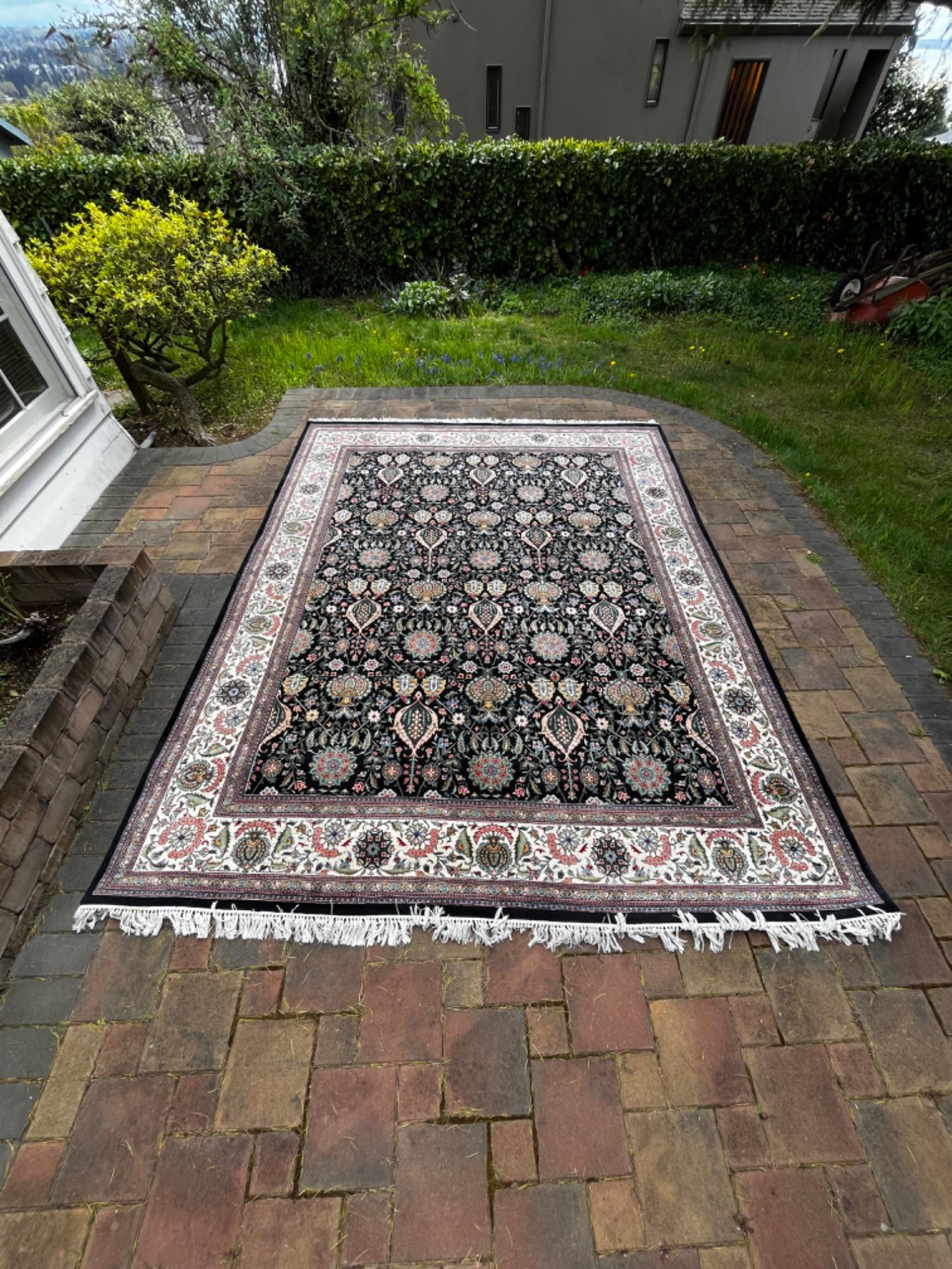 Minor snagging on edges A few light stains on dark edge Stain on tassels Measurements: 96 inches x 120 inches