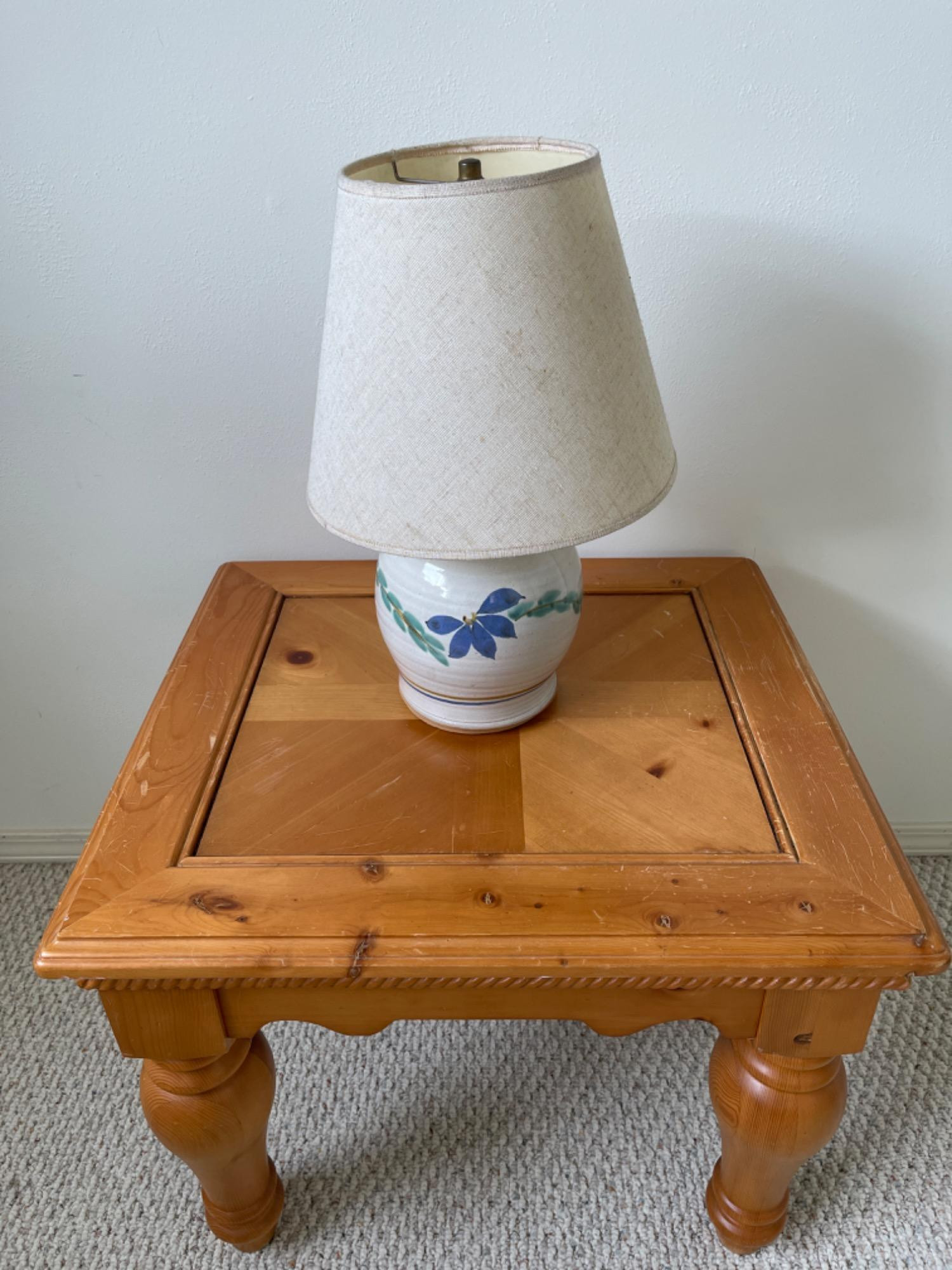 Lot # 41 - Vintage Pottery Style Table Lamp & Wood End Table