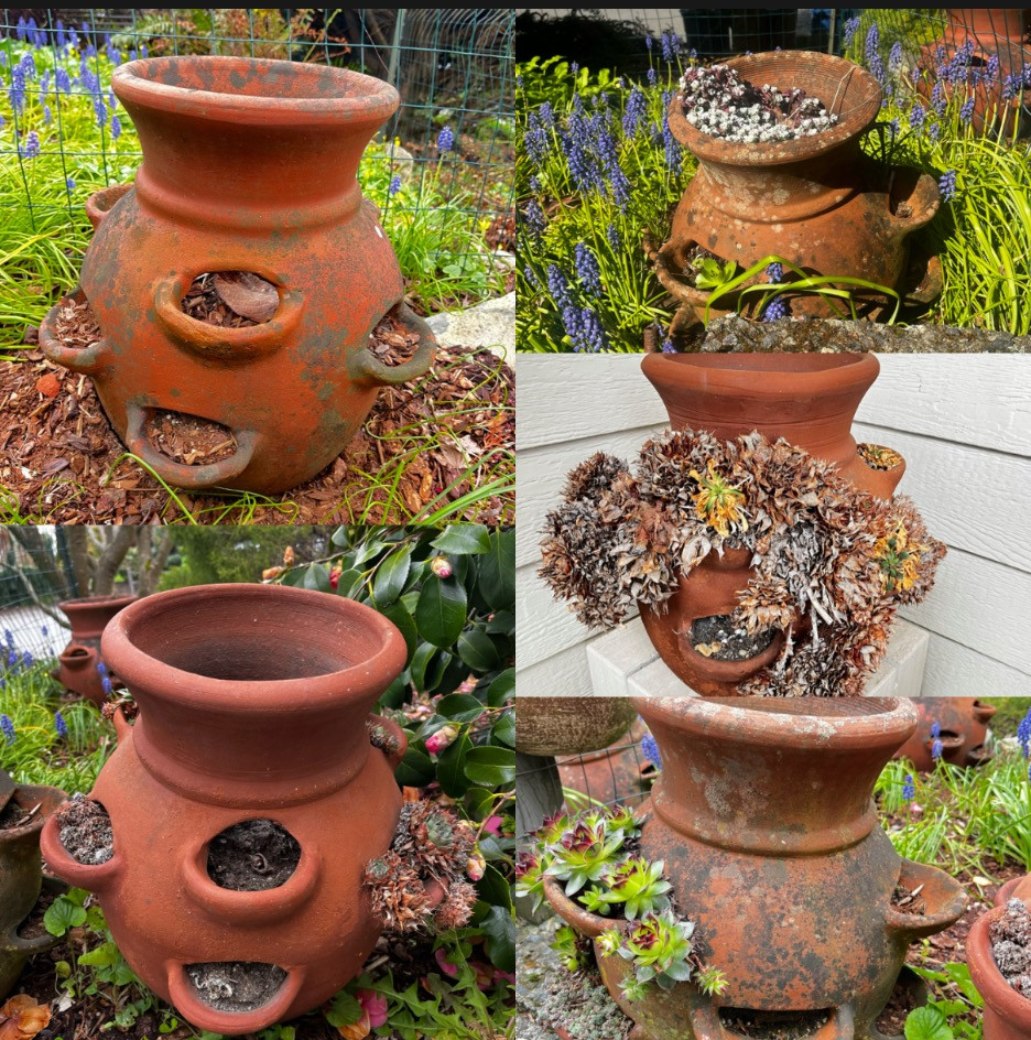 Measurements: 16 inches x 16 inches Some dis-coloring and weathering. Only 1 crack/chip was found, but otherwise good condition. Inside plants are included.