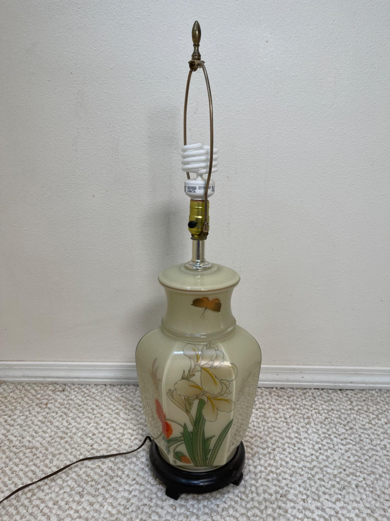 Lot # 103 - Vintage Glass Asian Ginger Hand-Painted Table Lamp #1