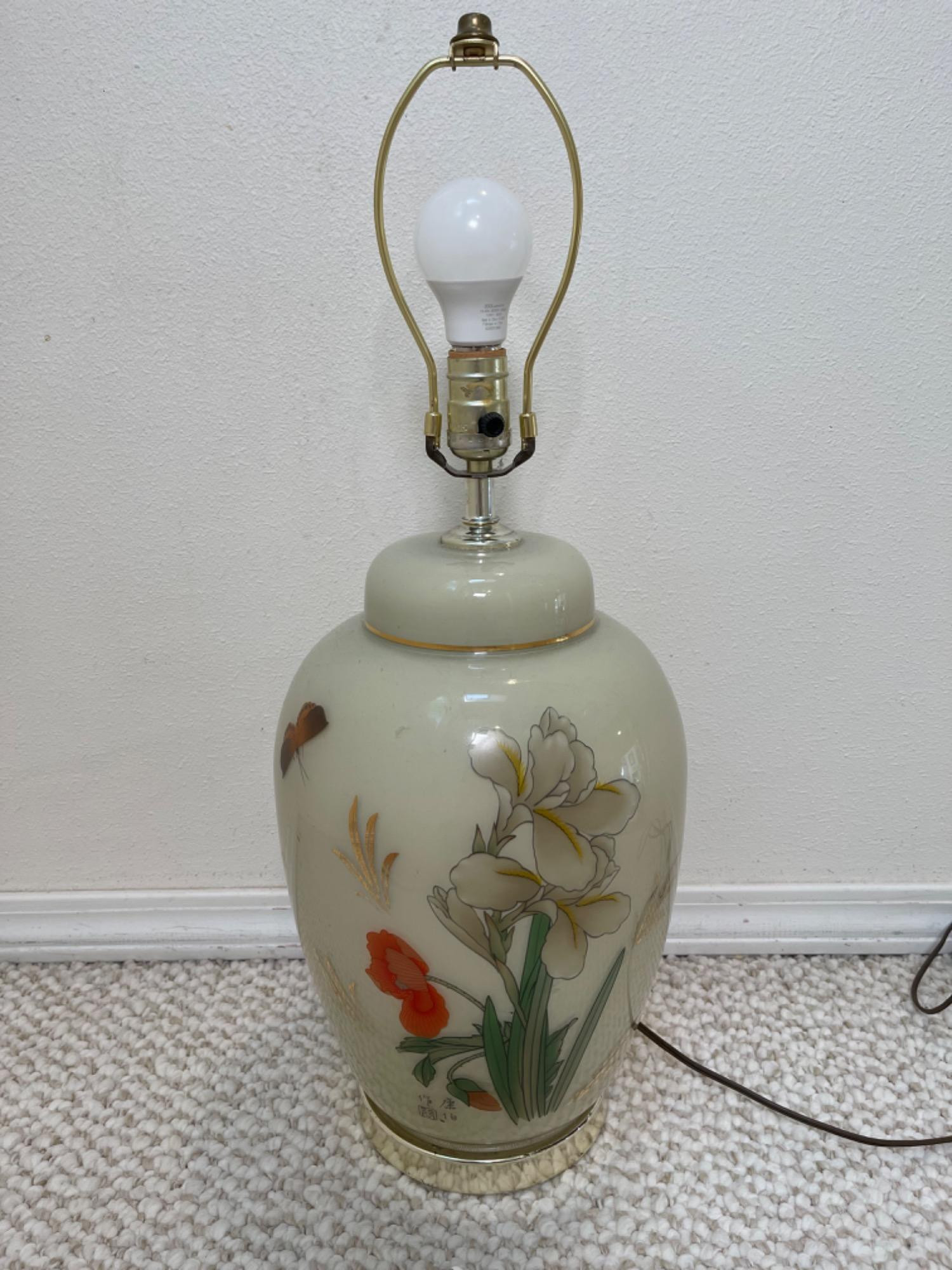 Lot # 110 - Vintage Glass Asian Ginger Hand-Painted Rounded Table Lamp