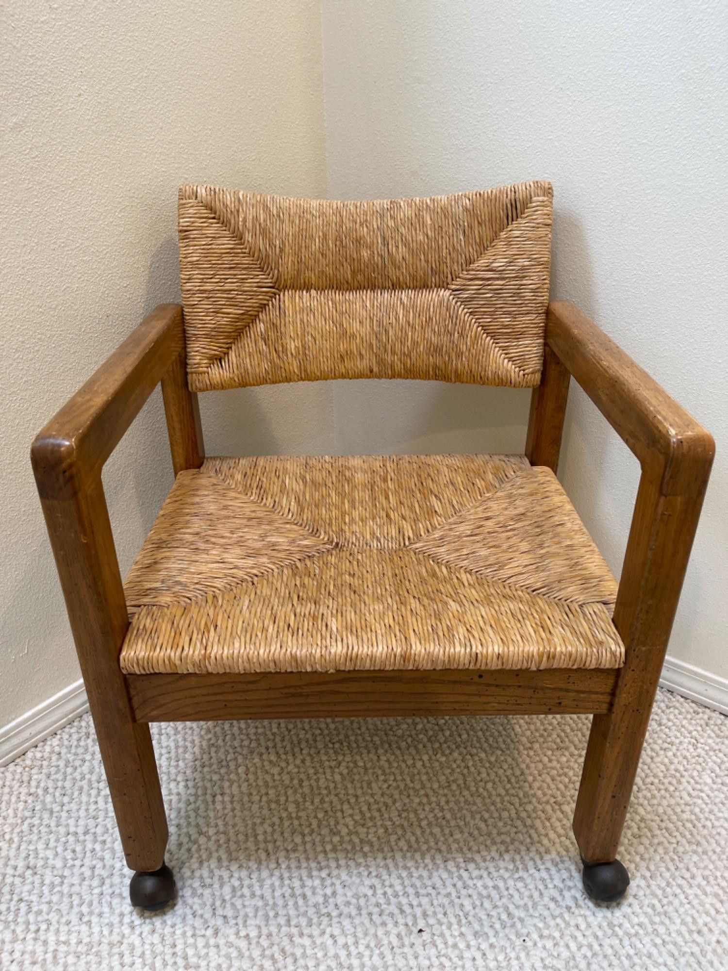 Lot # 133 - Wicker and Wood Rolling Desk Chair