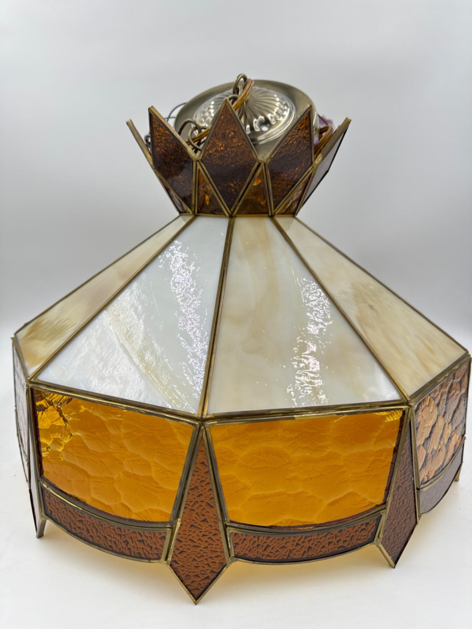 Lot # 71 - Vintage Brown & Orange Leaded Slag Stained Glass Light Fixture