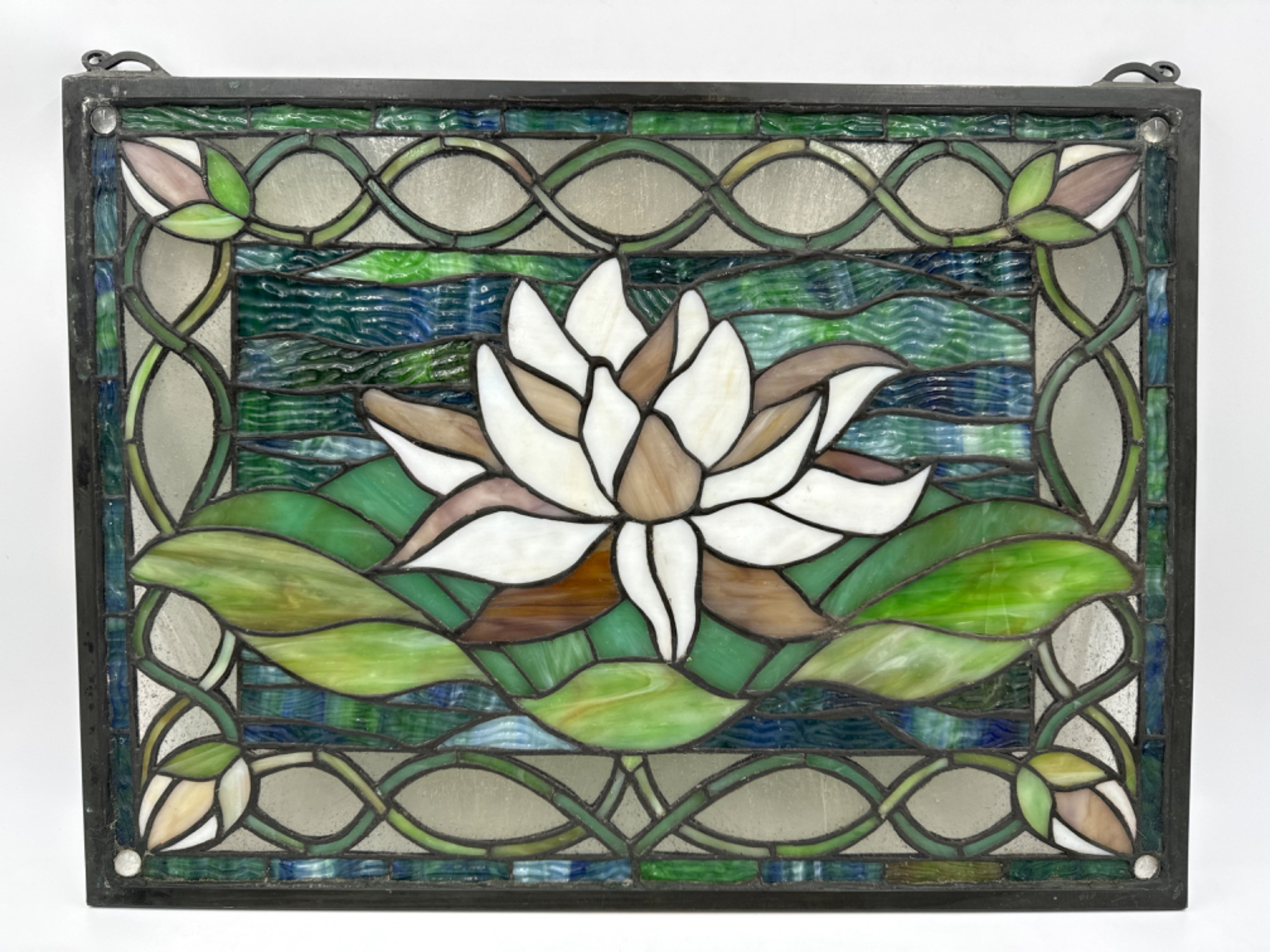 Stained Glass Lily & Lily Pad Hanging Panel Measures: 19" x 14" No noted isses