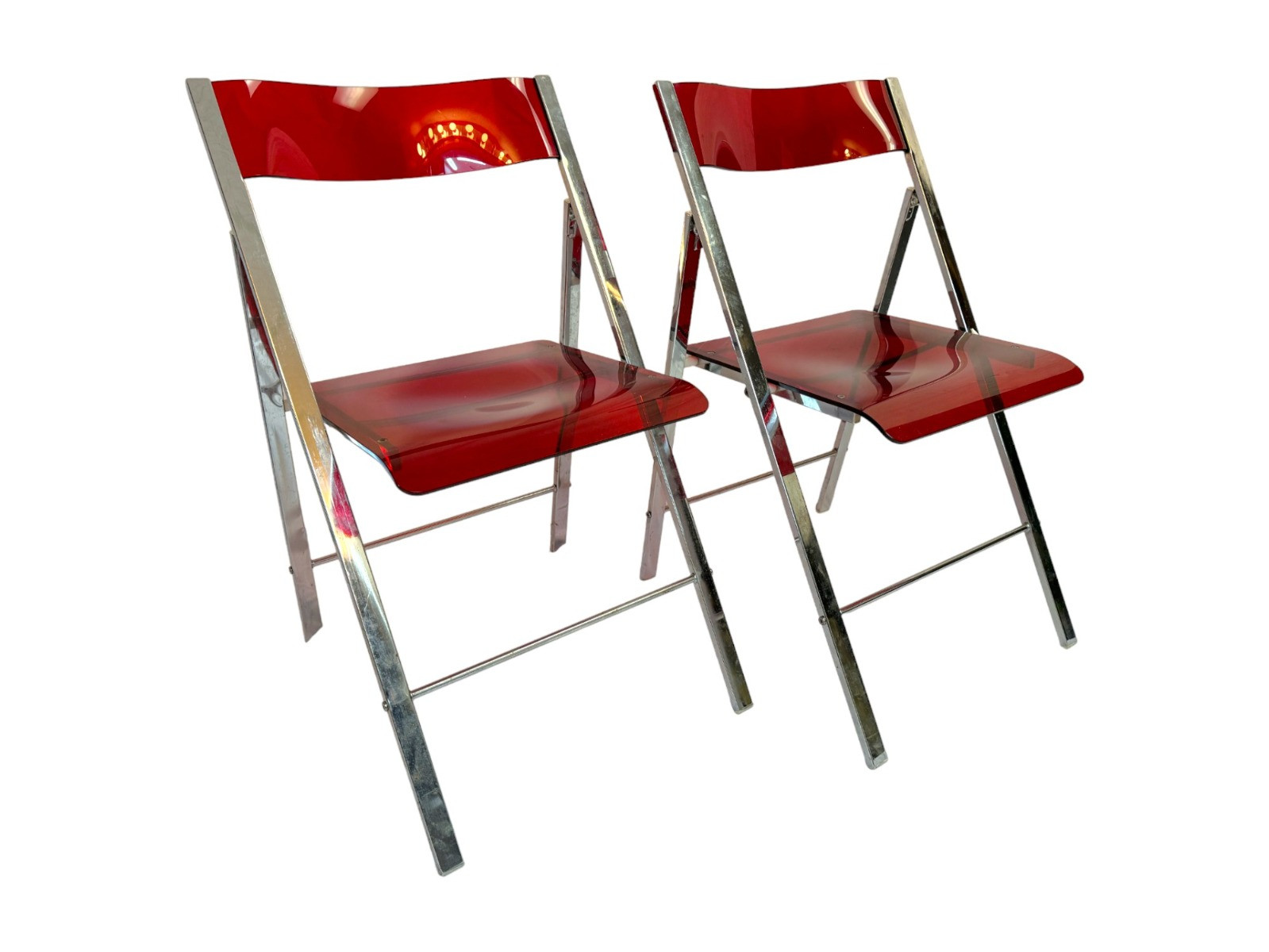 Lot # 101 - Cherry Red Acrylic Lucite Chrome Folding Chairs