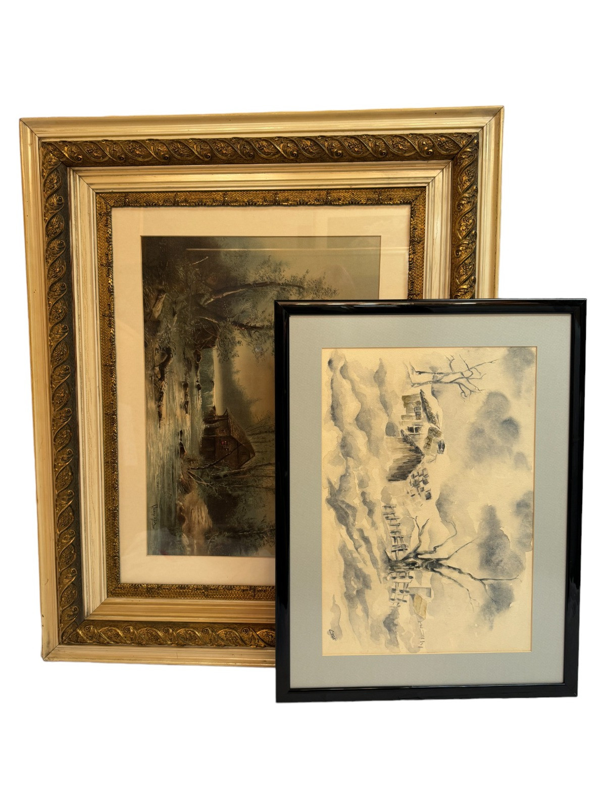 Vintage framed art Original Winter Landscape Watercolor Signed Cook - Frame measures 25.5 x 19.25" Beautifully framed Chandler Landscape Art Print - Frame measures: 31 x 37" - Wear to paint on frame