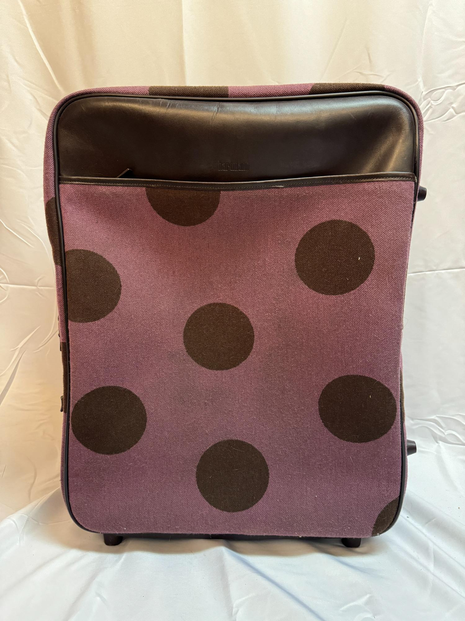Hartmann Purple & Brown Dots Leather Expandable Upright Suitcase Like new, great condition Measures: 25" x 19" x 12" with expansion capacity