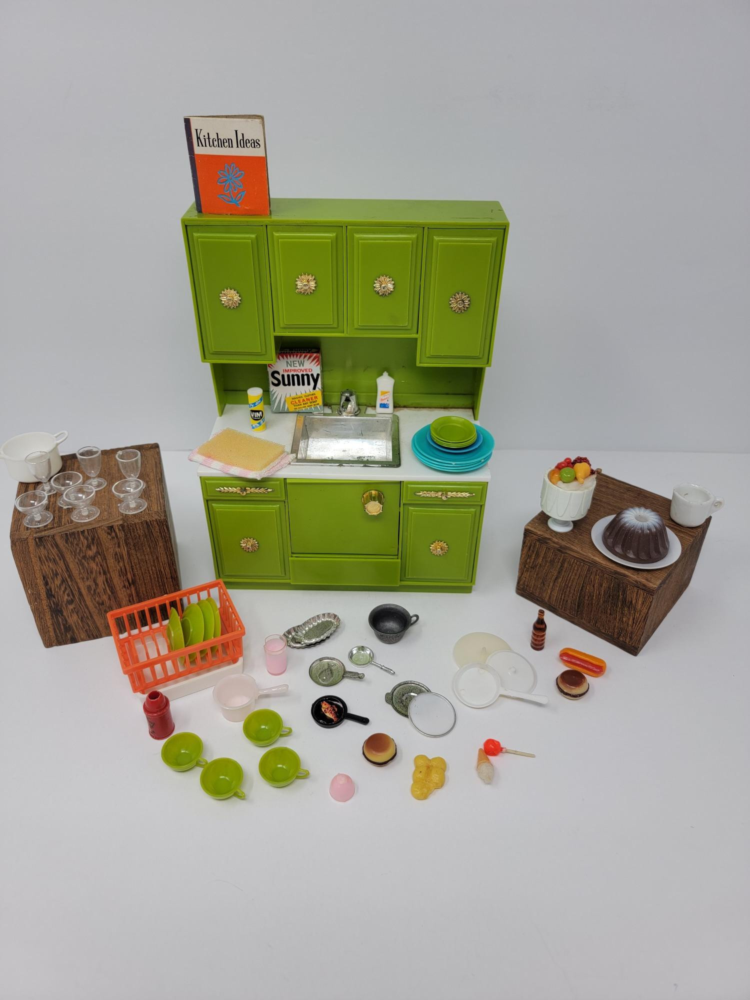 Vintage Marx Little Hostess Kitchen Set 80+ pieces kitchen area measures about 9" x 7"
