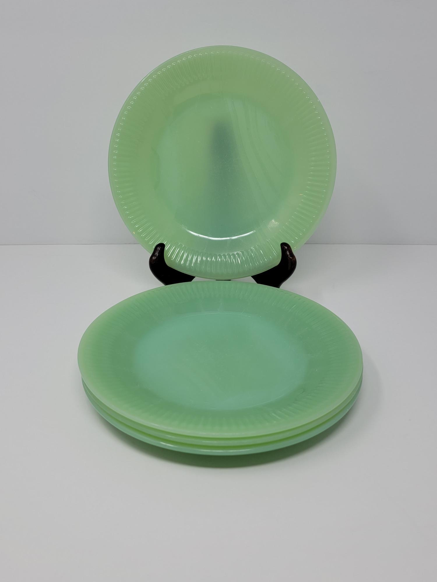 Jadeite Jane Ray Fire King Salad Plates (4) Each salad plate measures 7.75" across