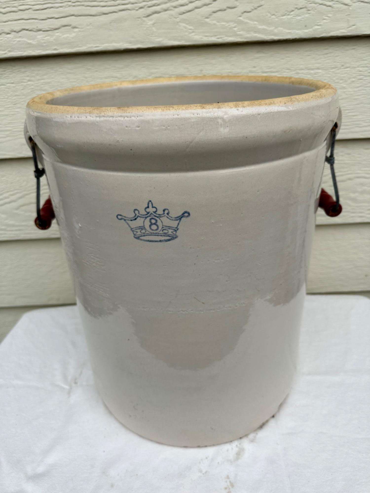 Antique Stoneware 8 Gallon Crock With Handles 17 T x 13.5 W.