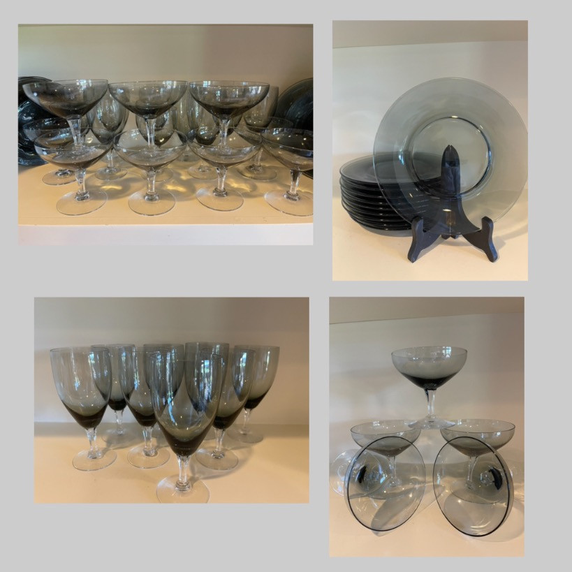 Lot # 38 - Mid Century Gray Glass Stemware and Plates