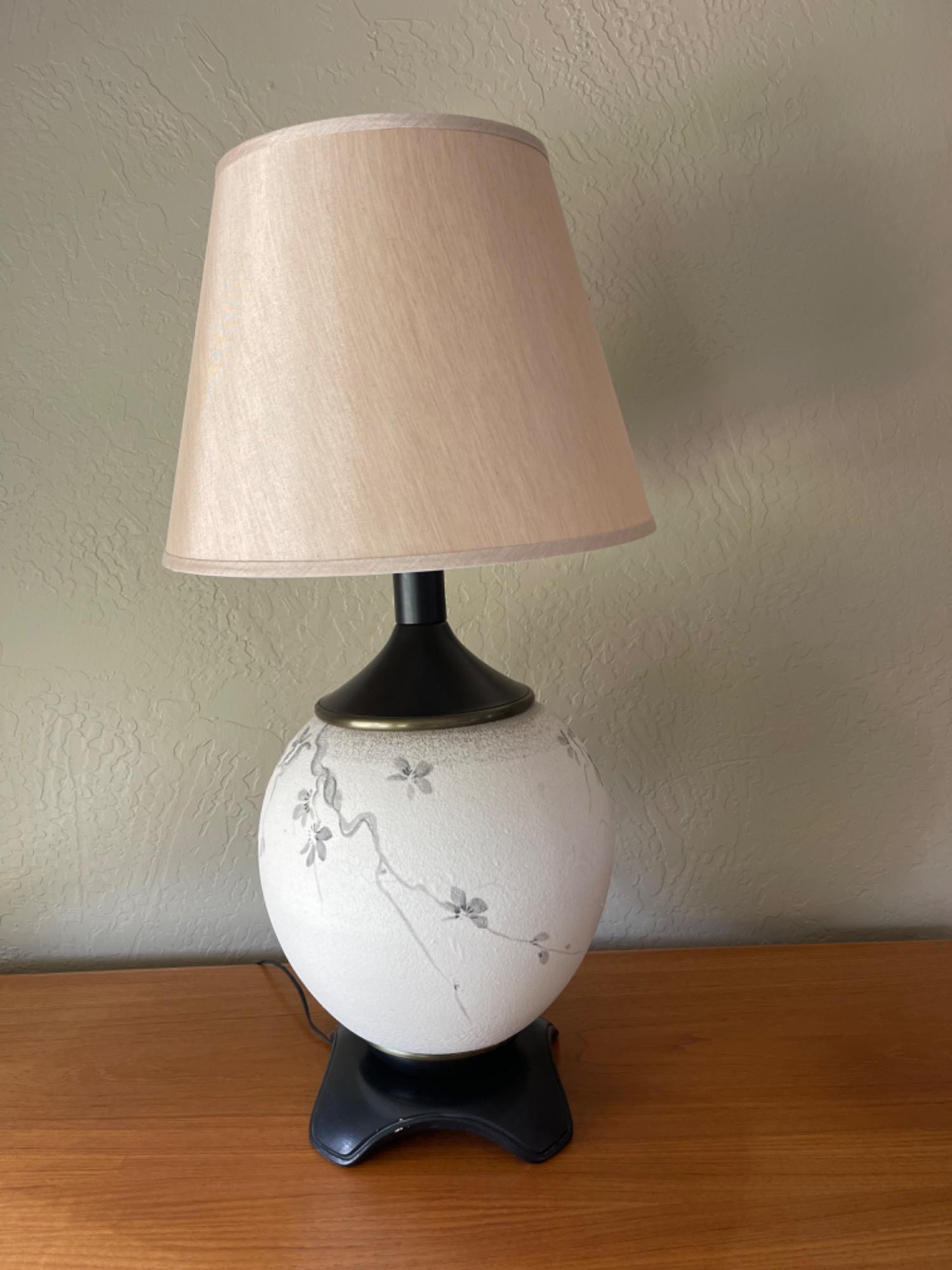 Asian Motif Ceramic Lamp- Black Accents Base 15" Tall