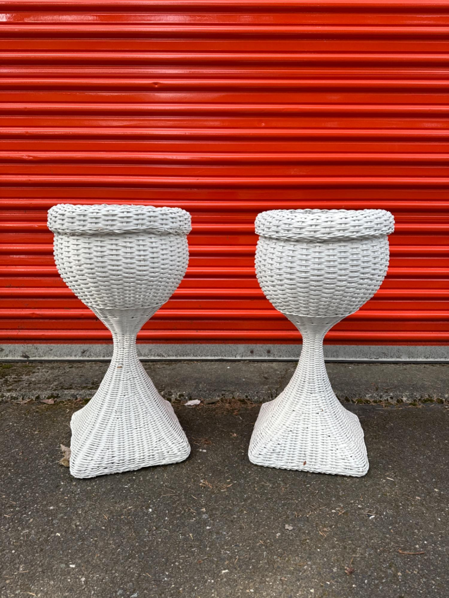 Lot # 51 - Vintage White Wicker Urn Shaped Plant Stand Holders - 24"T