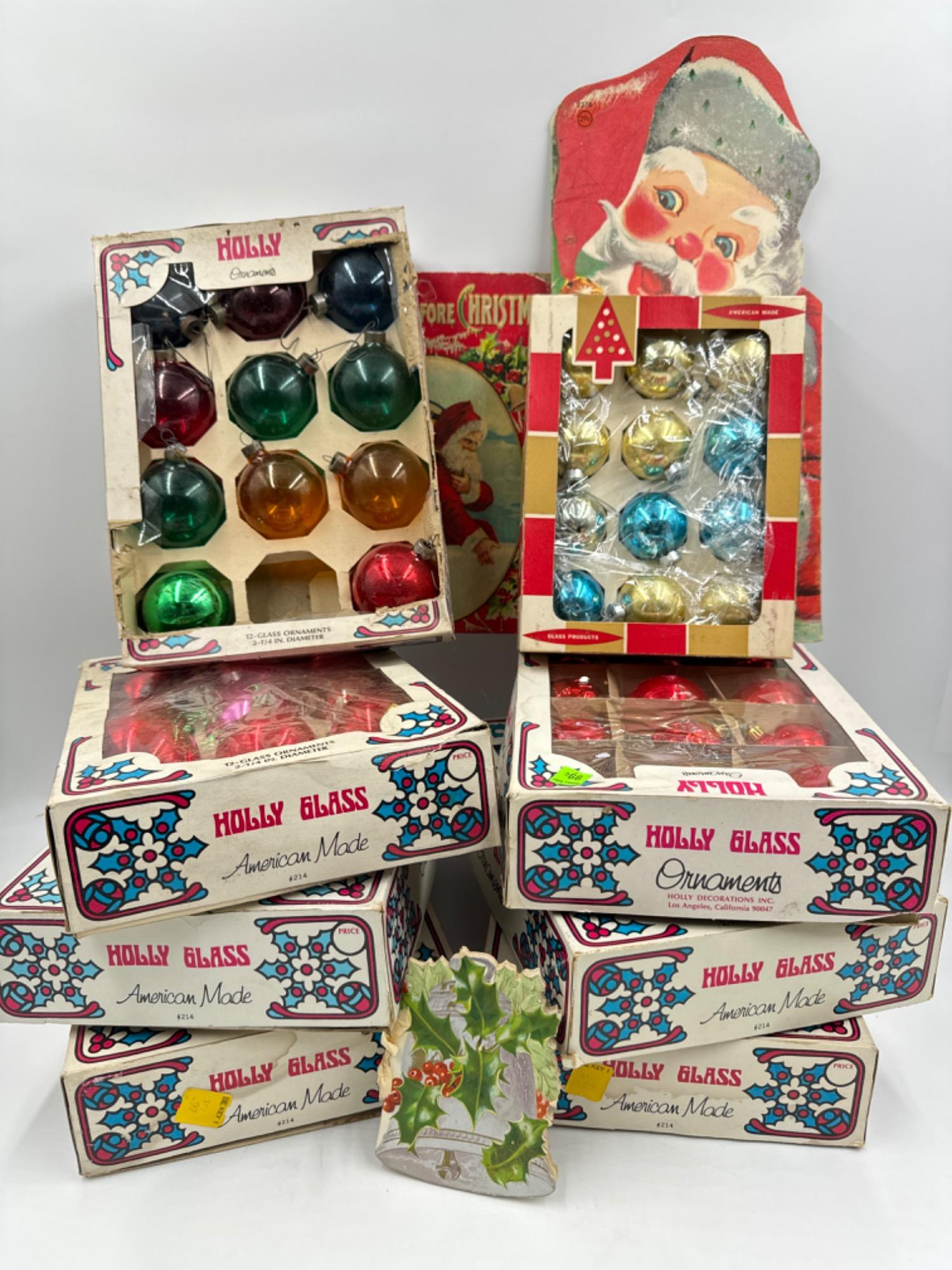 Lot # 94 - Retro Holly Glass Christmas Ornaments + Books
