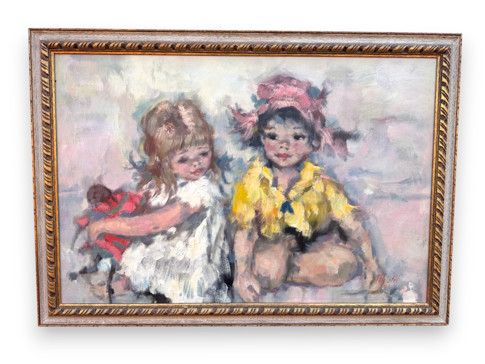 Vtg Signed Original Impressionist Oil Painting 'Children' by Maleter Oil on canvas Frame measures: 40 x 28" Great condition