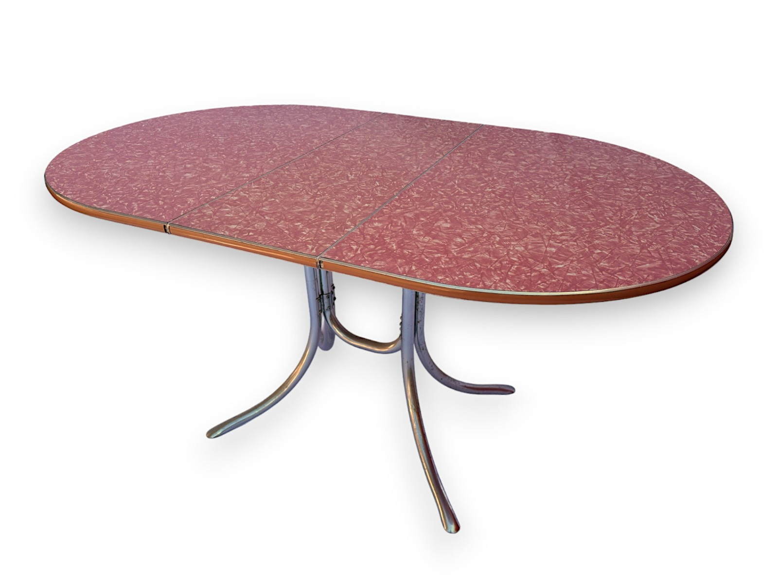 Lot # 129 - Retro Vintage Virtue Bros Red Drop Leaf Formica & Chrome Dining Table