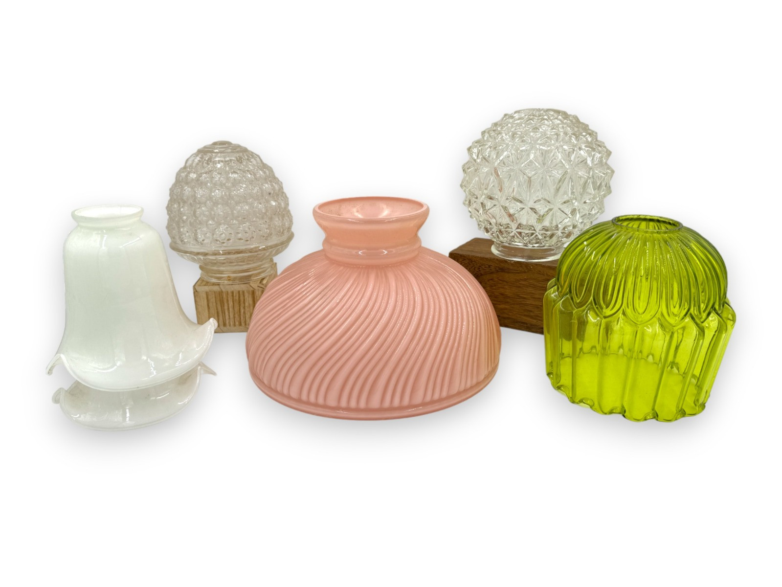 Lot # 135 - Retro Glass Lampshades - Pink, Green, Hollywood Regency Clear, & White