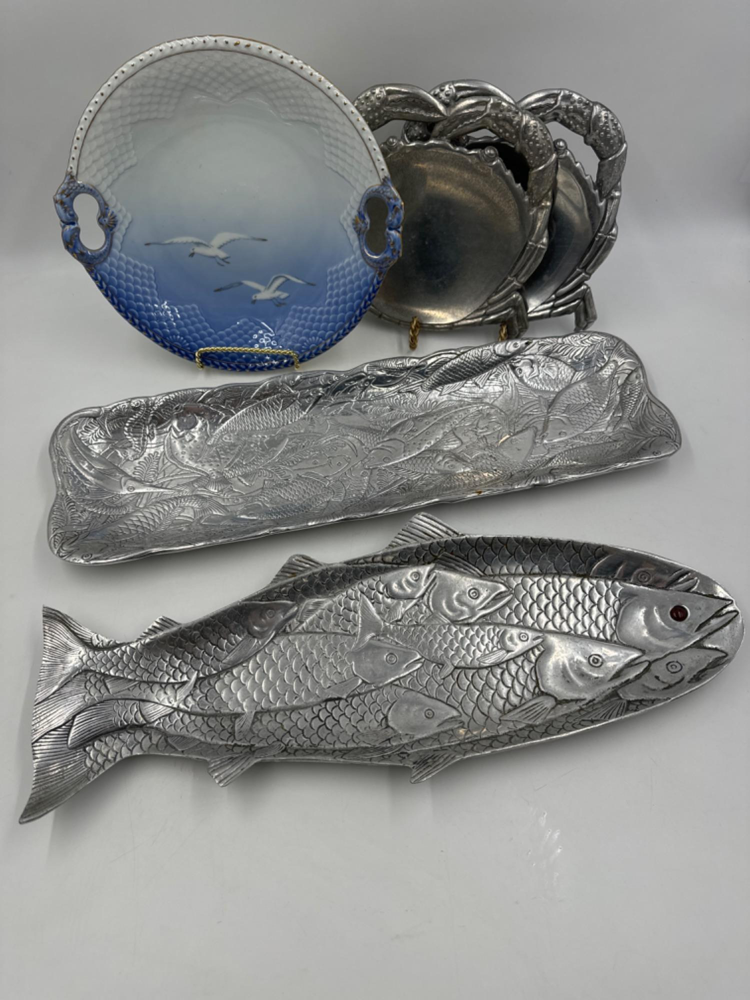 Lot # 185 - 1980s Arthur Court Aluminum Fish & Crab Servers + B&G Plate