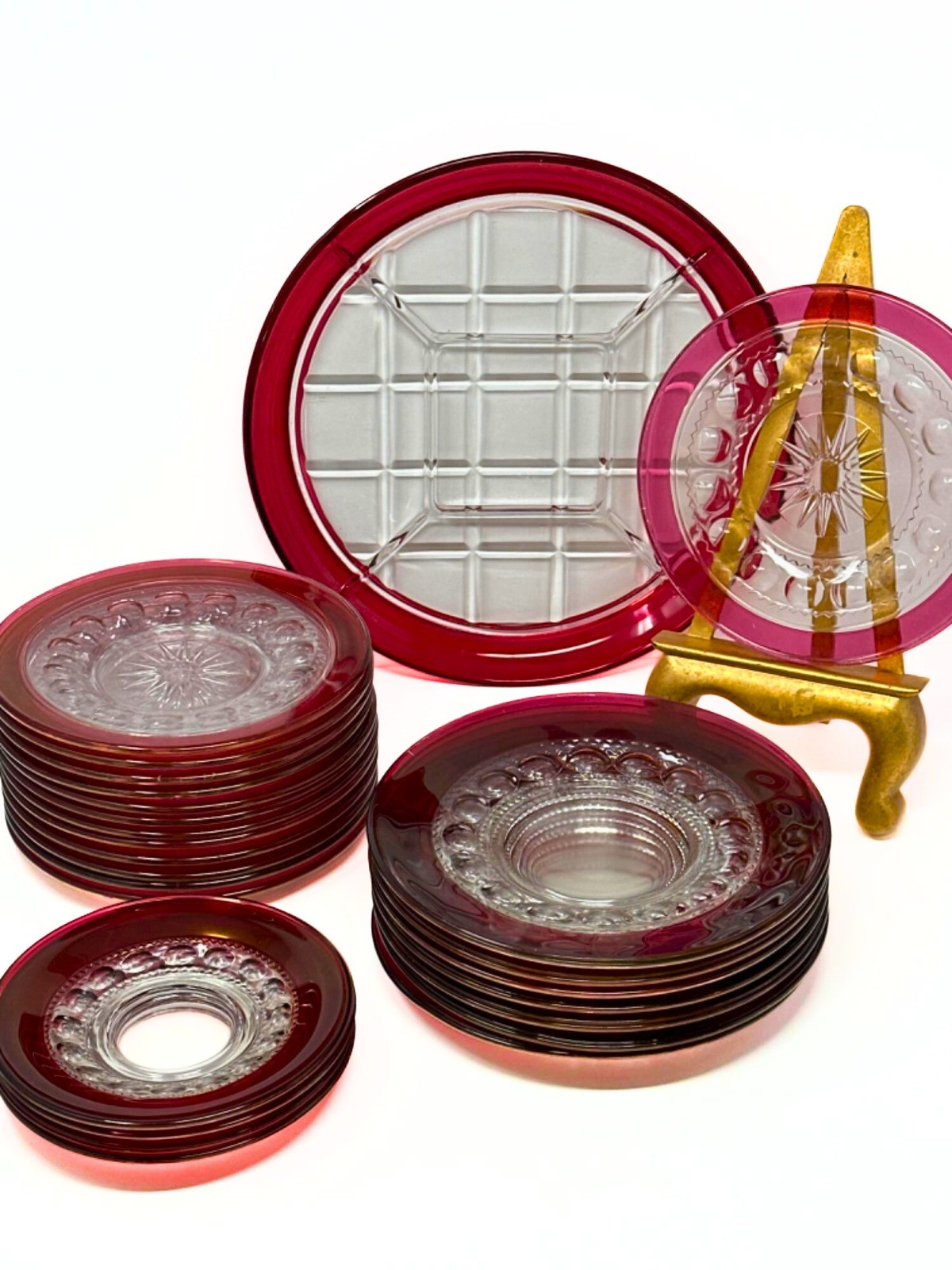 Lot # 51 - Vintage Ruby Red Plates & Serving/Relish Tray