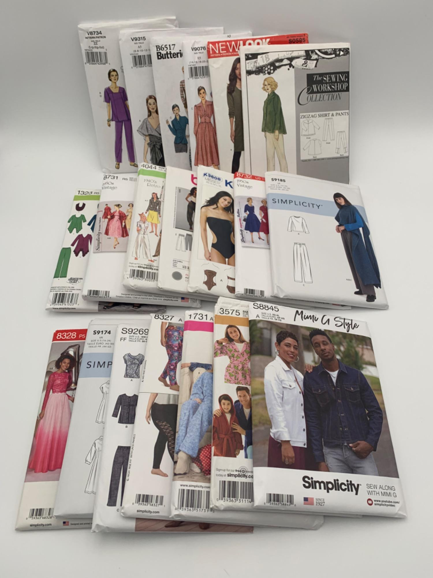 20 large manufacturer-produced women's sewing patterns from various makers. Most are mutli-size on the larger end of the size range. All are new and uncut. Please see photos for details.