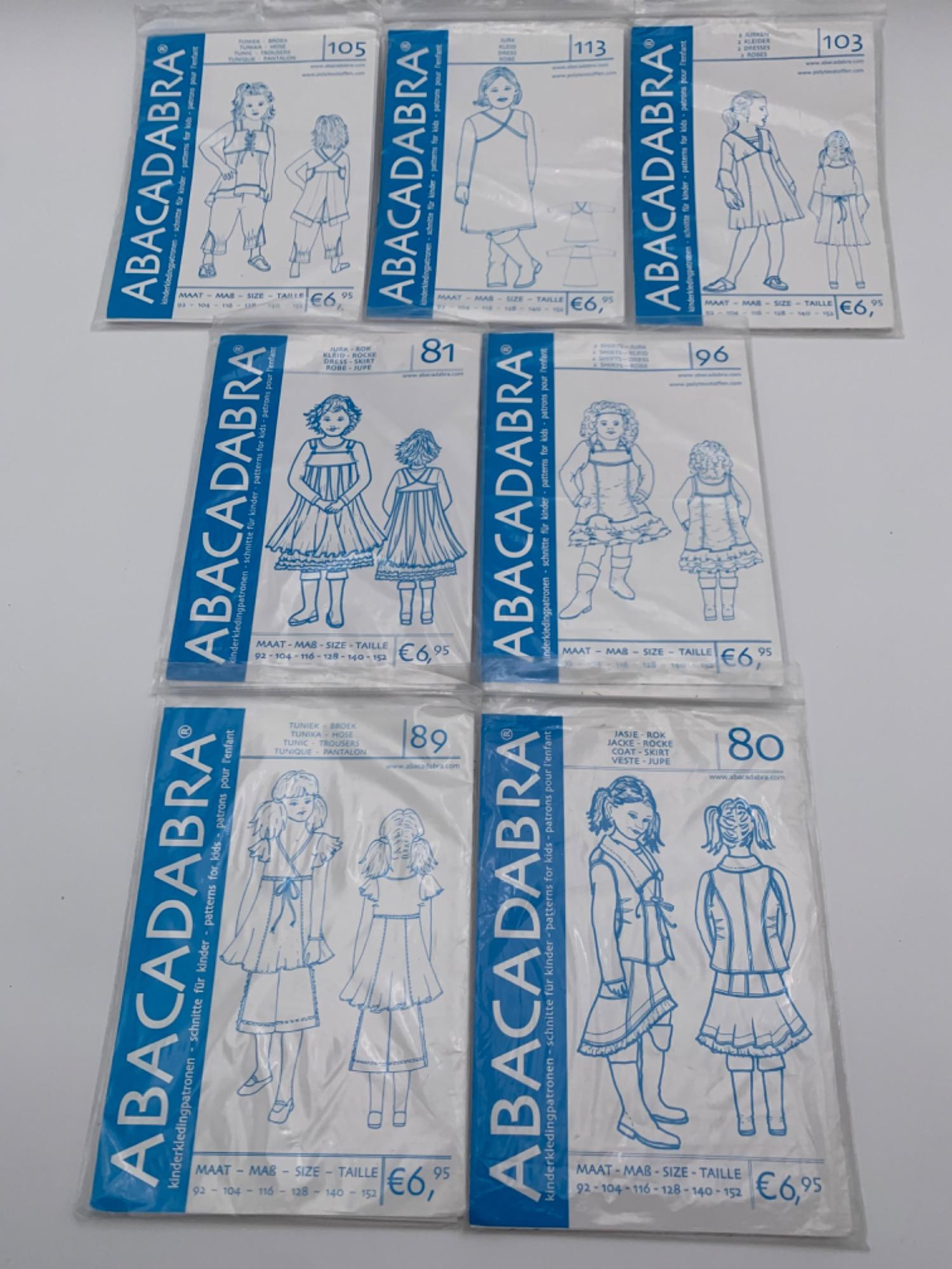 sewing some of the other patterns in the lot. We believe this company is now out of business, but their patterns are still being sold - here is one on line: https://www.etsy.com/ca/listing/1191621767/abacadabra-64-complete-uncut-factory