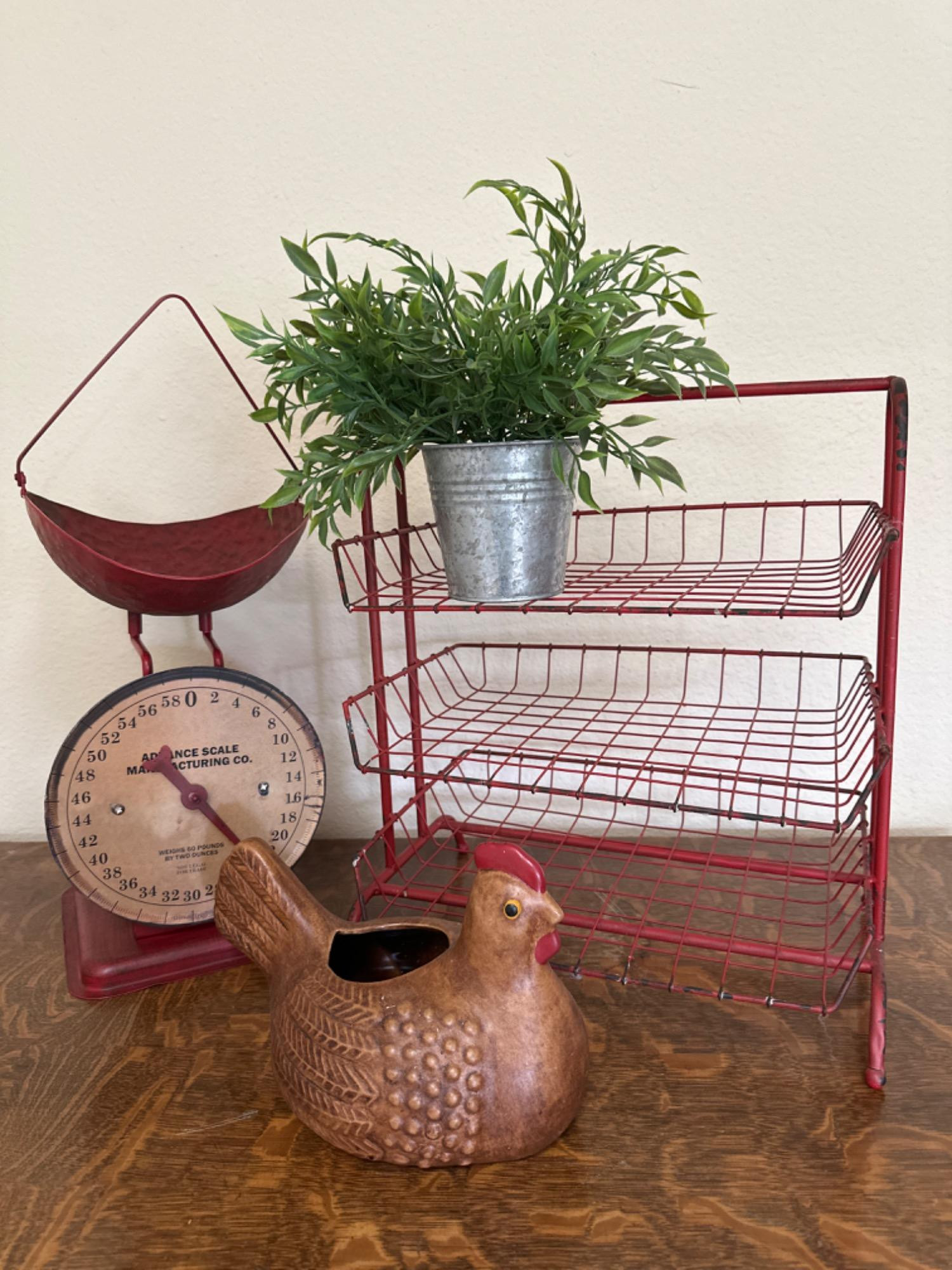 Lot # 18 - Decor Country Lot-Scale, File Rack, Chicken Planter and Plant
