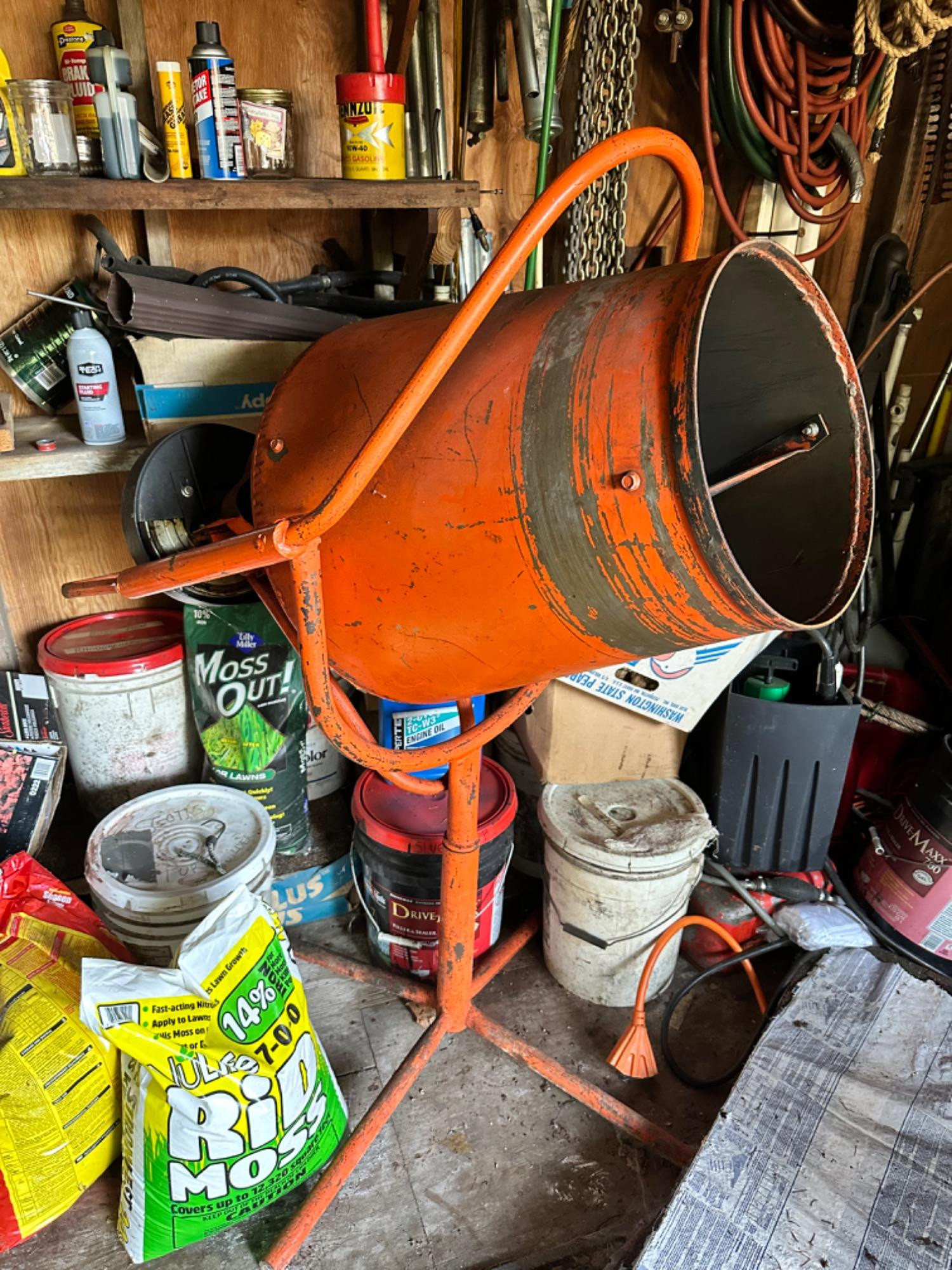 Cement Mixer- Not Tested. Measures 44 D x 24 W x 56 T comes with extension cord.