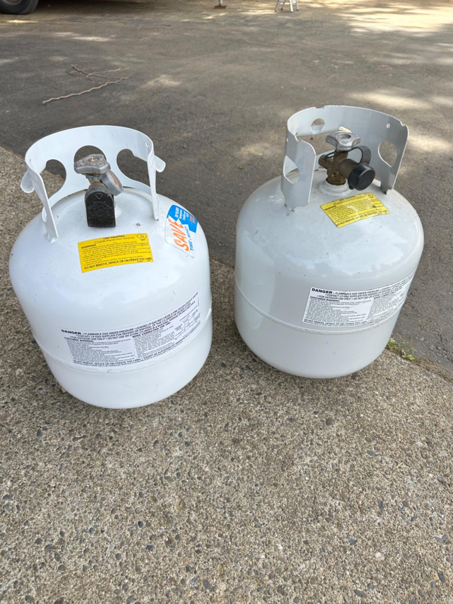 Two Full Propane Tanks. These were heavy and capped, appear to be full but weren't tested.