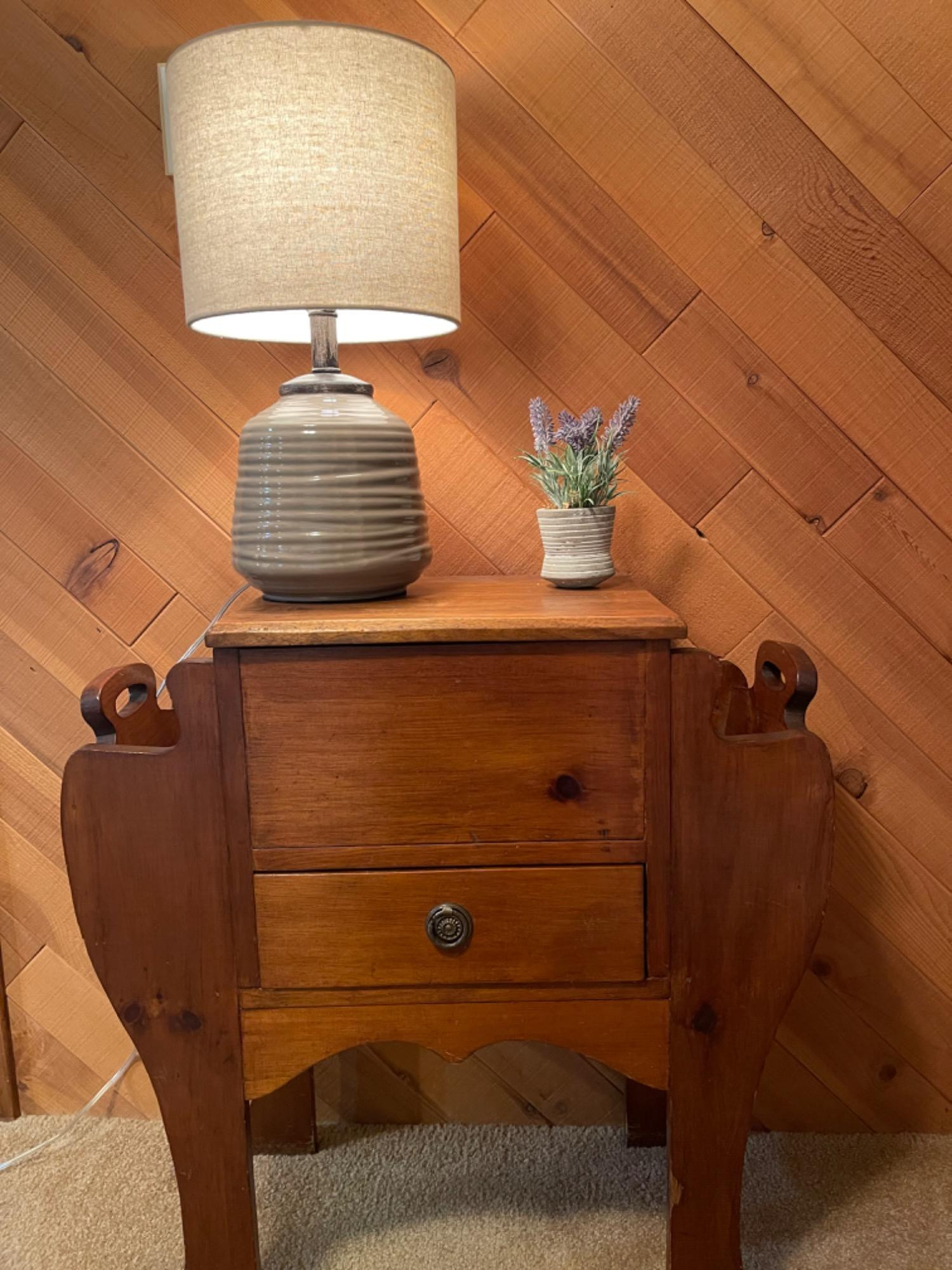Vintage Lift Top Magazine Side Table With Lamp and Plant. Magazine Table- 26W x 28T x 12D