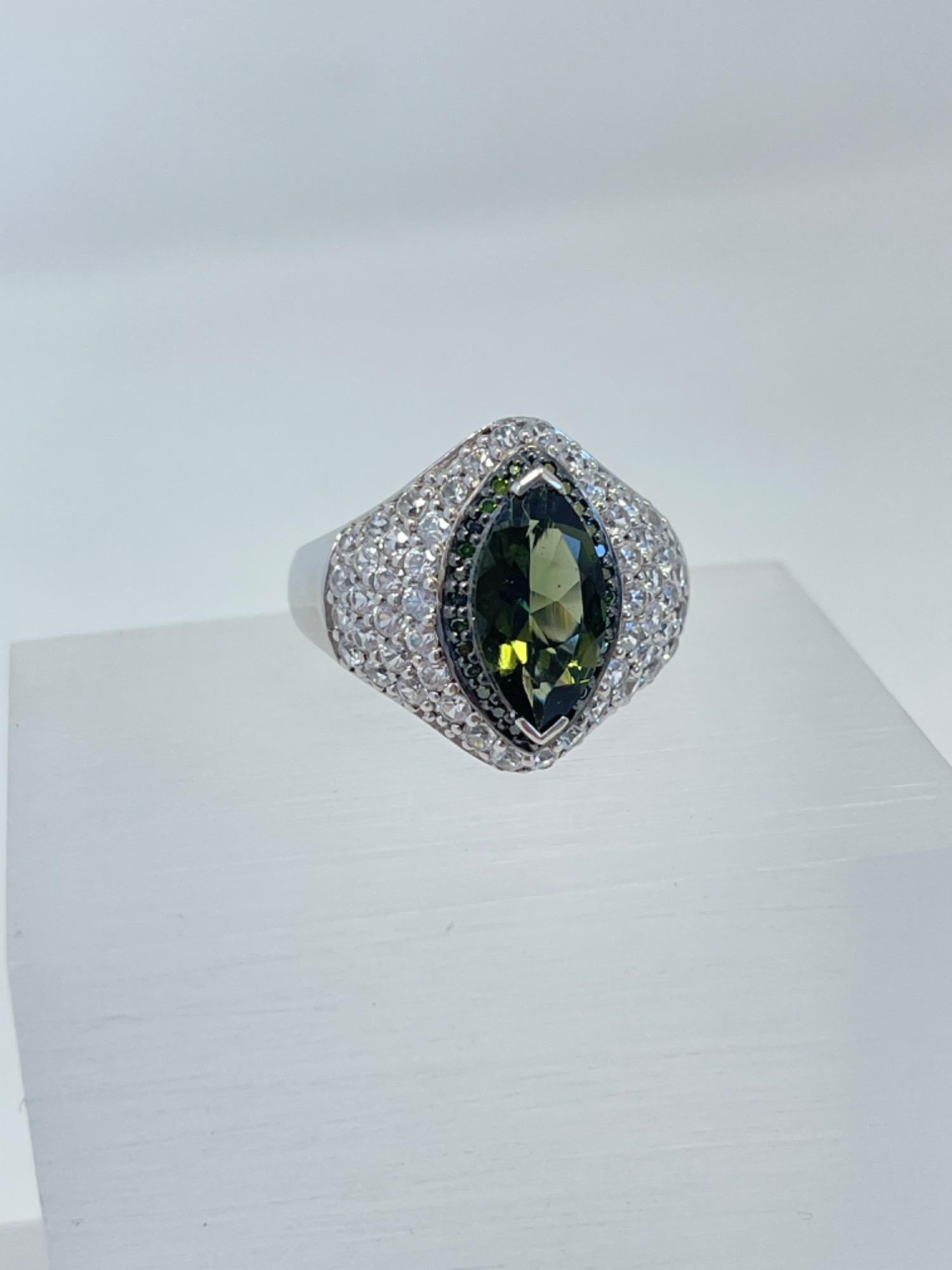 Lot # 5 - Sterling Silver Moldavite Ring - Size 10