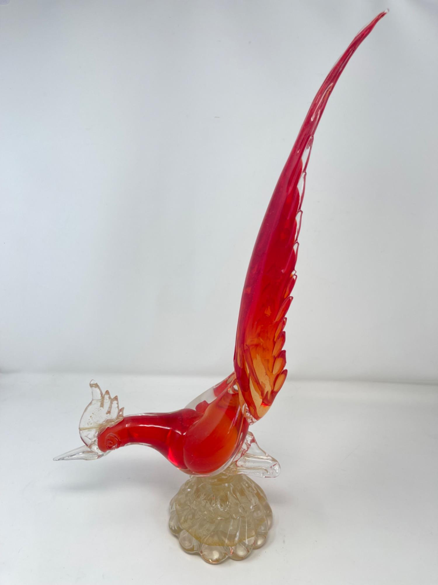 18.5 inches tall Top of head feathers have been broken off and glued back on. One of the back under feathers has broken off.