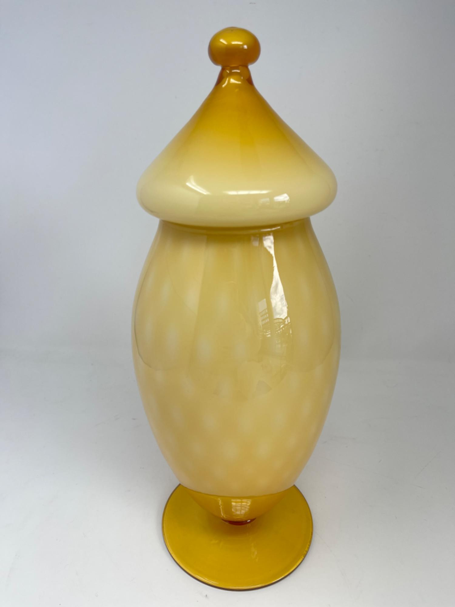 Lot # 87 - Rare Empoli Italian Butterscotch Apothecary Jar w/ Circus Tent Lid