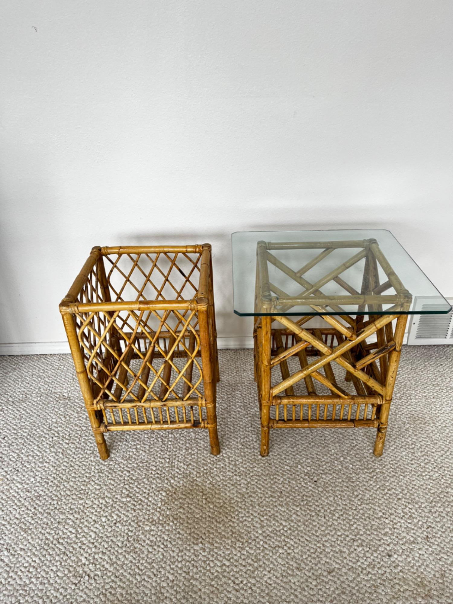 Lot # 95 - Bamboo Style Side Tables - MISSING GLASS TOP FOUND - See photos