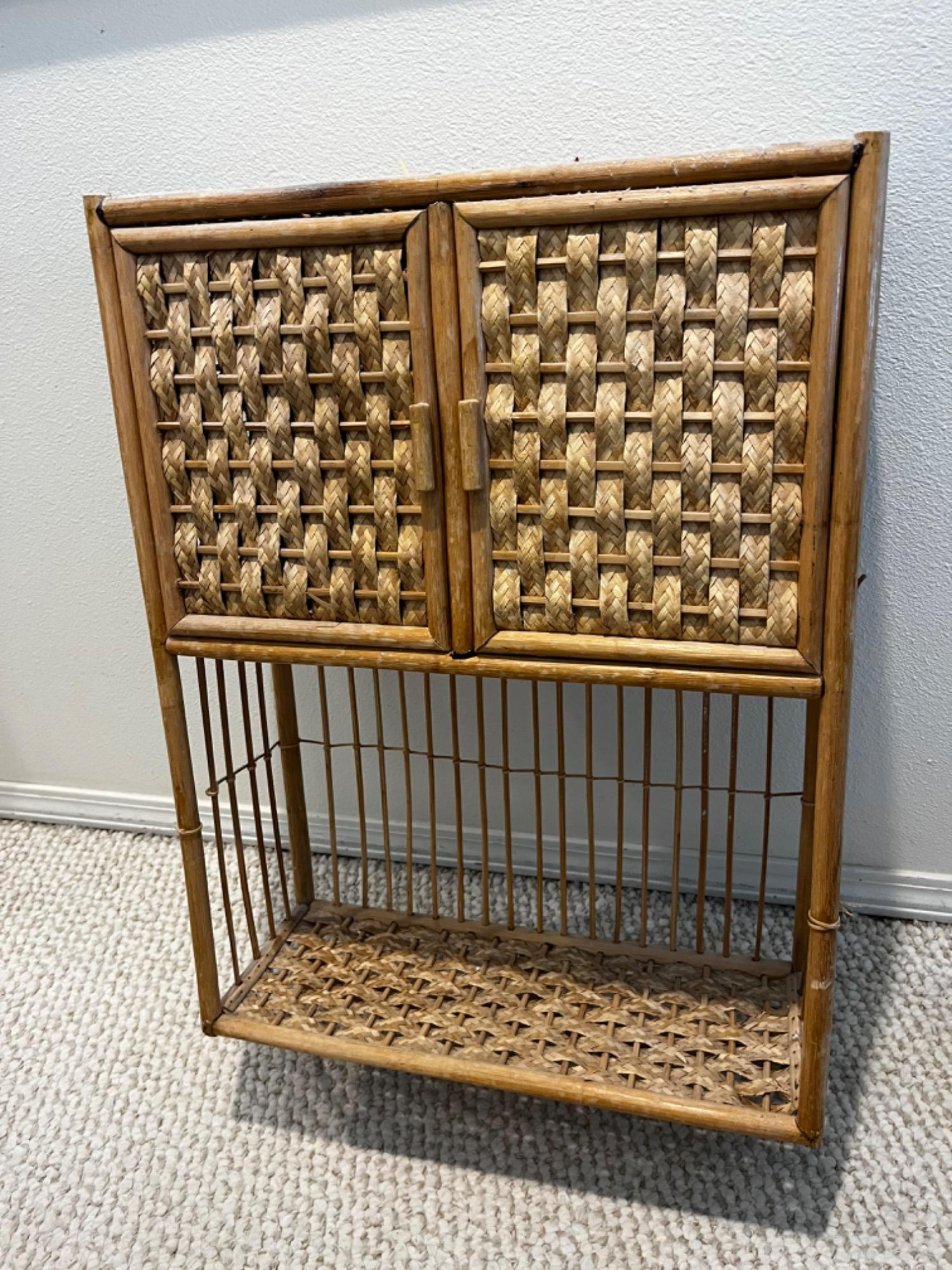 Lot # 114 - Rattan Wall Cabinet and Shelf