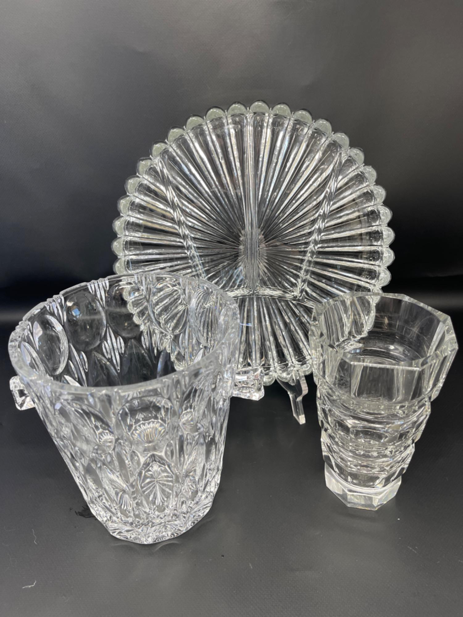 Tray: 10 inches wide Ice Bucket: 6.5 inches tall Kusak Vase: 9.25 inches tall No large chips or scratches. Great condition.