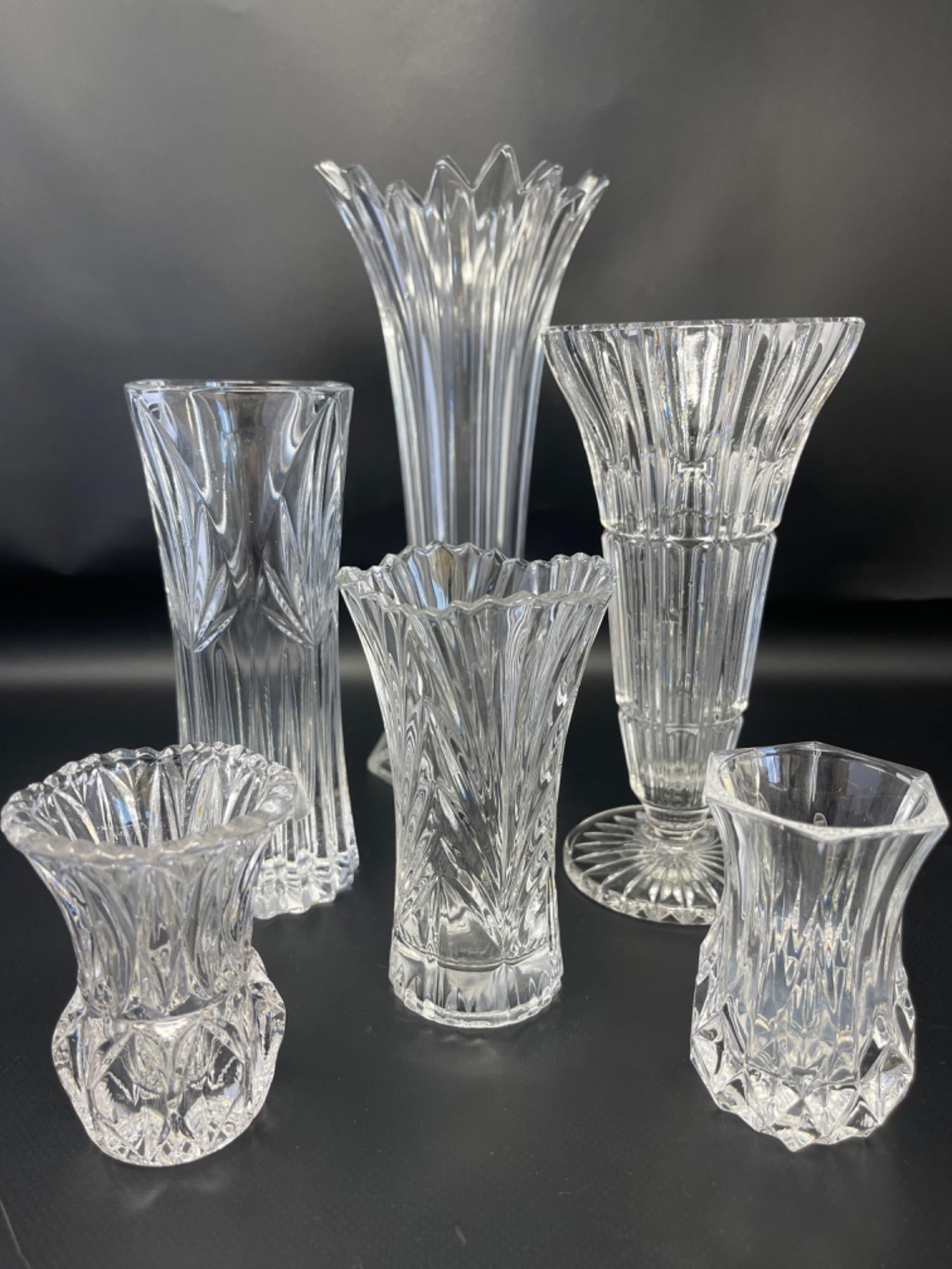 Lot # 128 - (6) Vintage Lead Crystal Vases - Assortment of Sizes