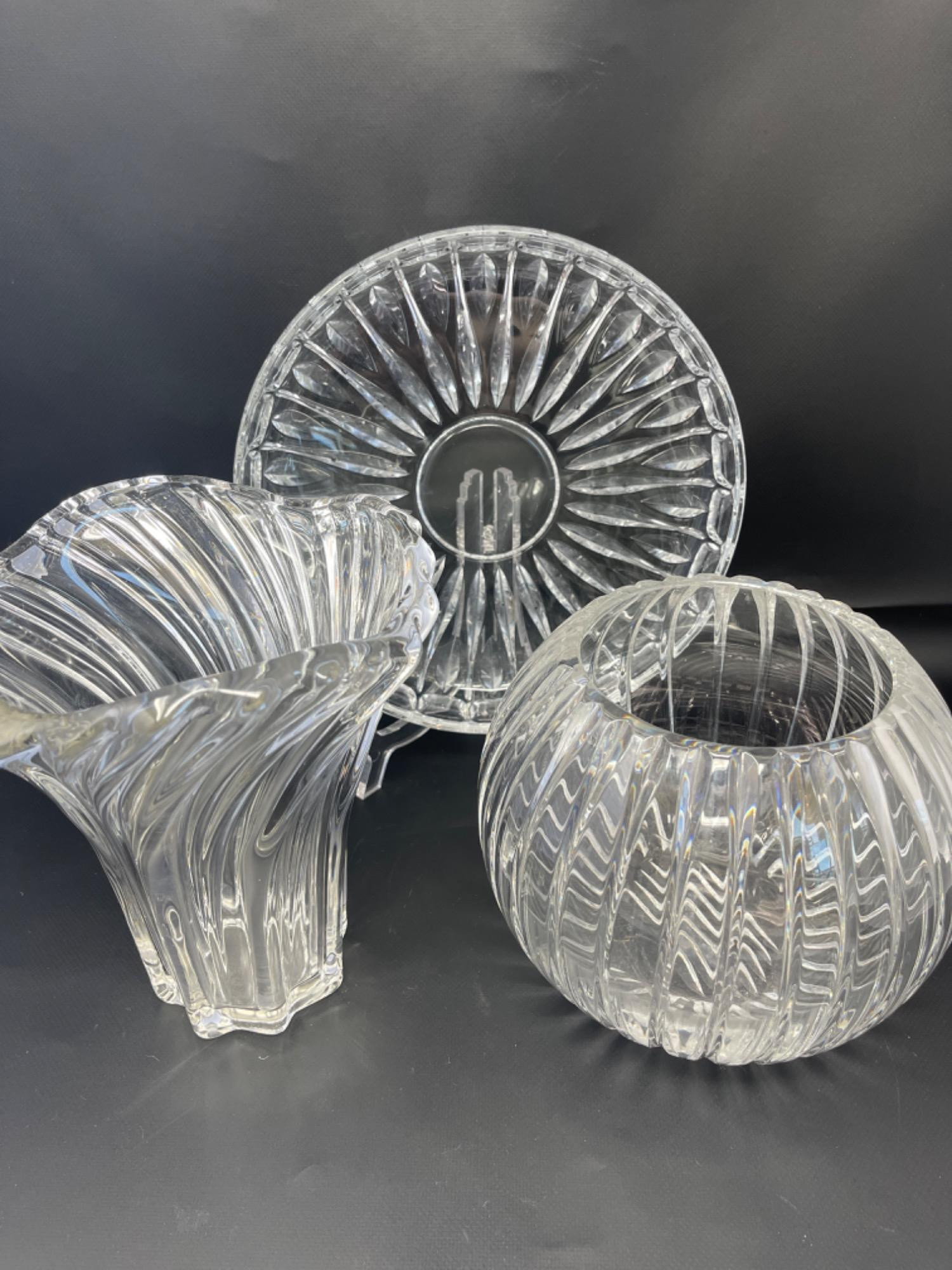 Lot # 137 - Vintage Lead Crystal Tray, Vase and Bowl