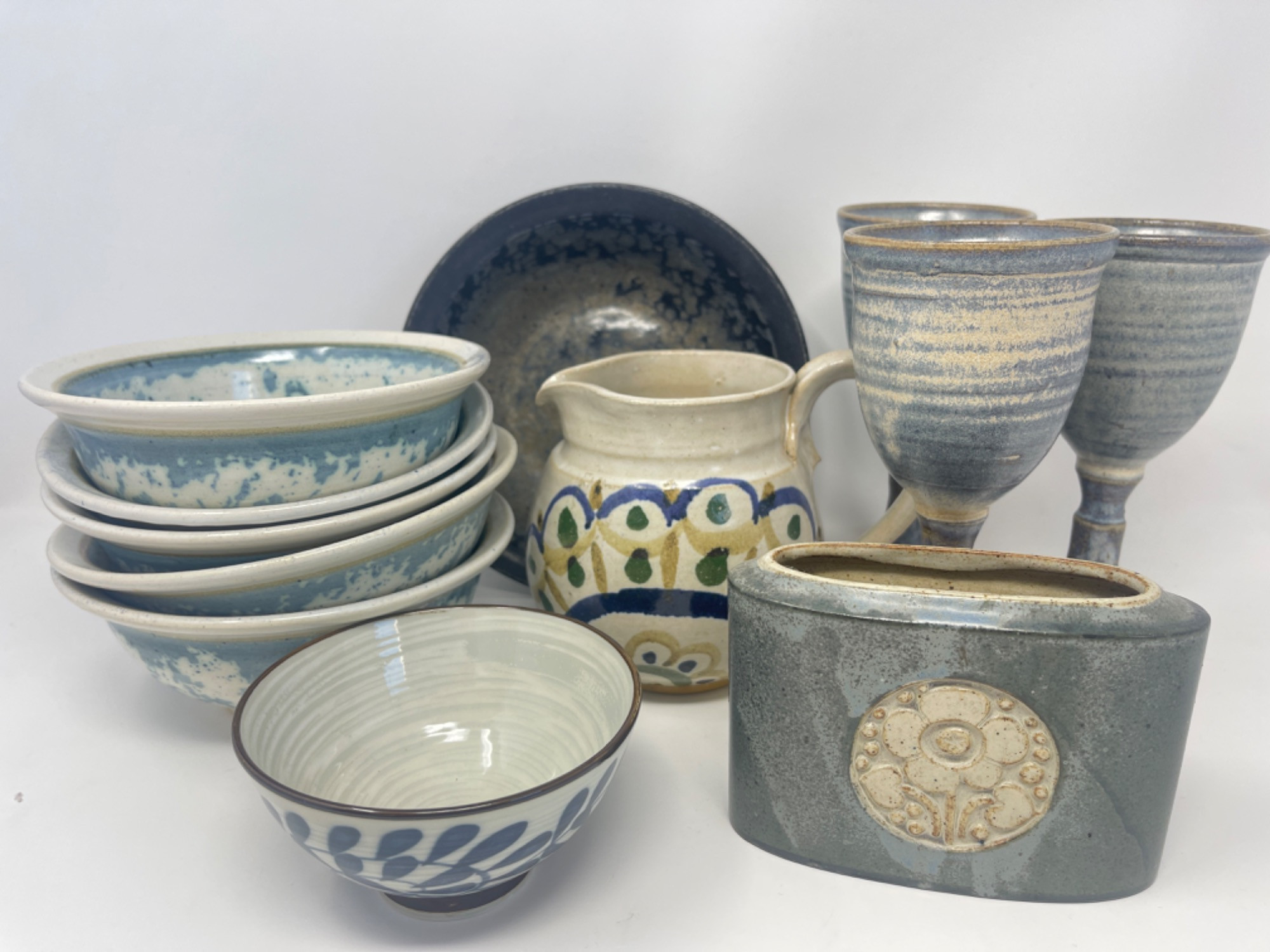 Lot # 164 - Assortment of Blue Pottery! Some Signed