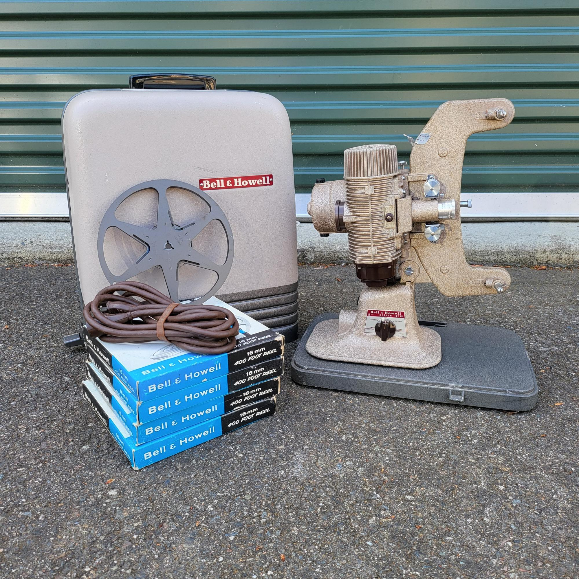 Vintage Bell & Howell 122LR 8mm movie film projector with storage hard case. Untested. Extra 16mm empty reels.