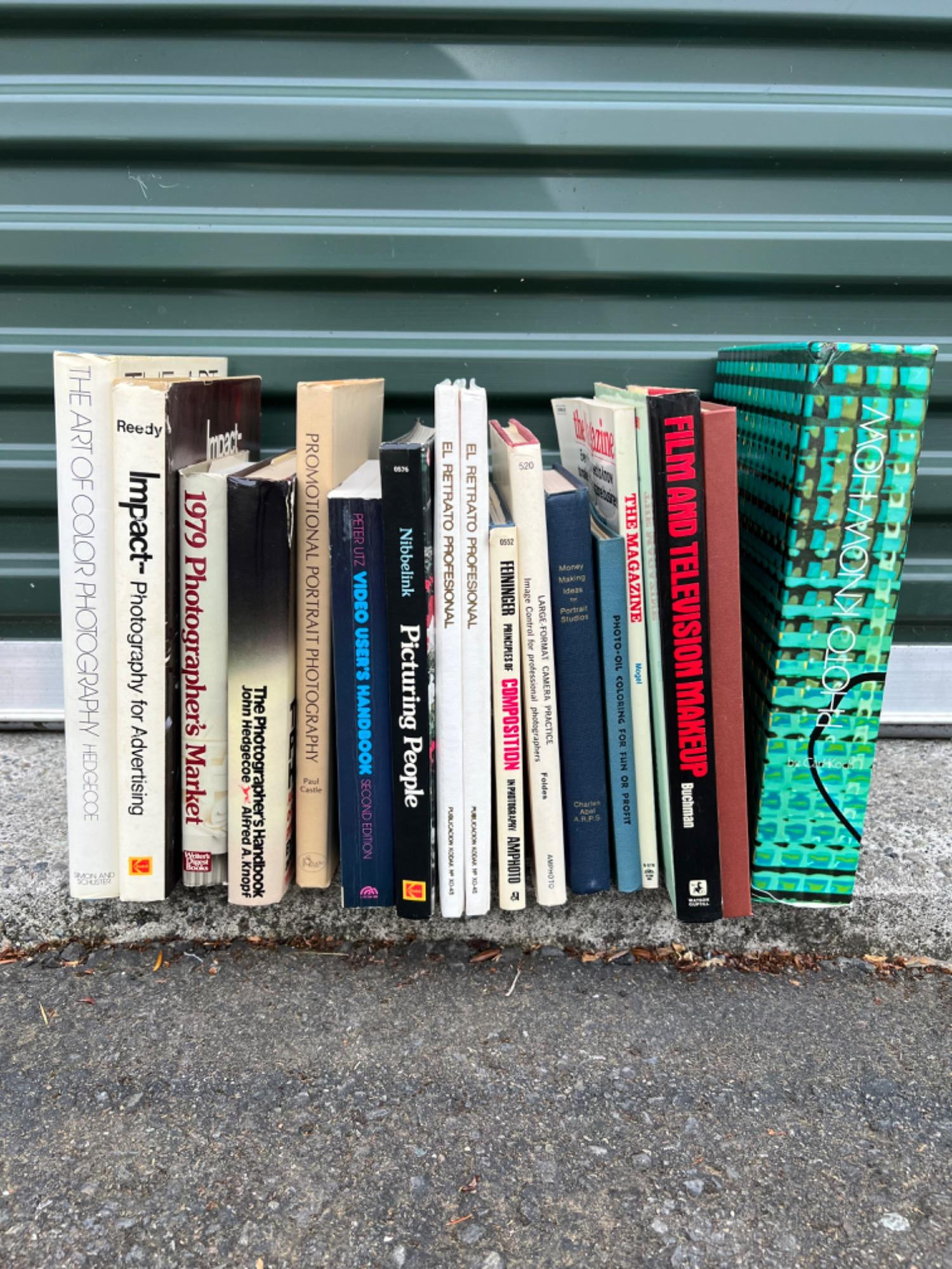 Several mid century hardback books about the field of filmography and photography. Some titels include: "Principles of Composition in Photography" by Feninger; "Picturing People" by Nibbelink; "Impact Photography for Advertising" by Reedy; "Film and Television Makeup" by Bachman; "The Wedding Story Beyond the Camara" by Jack Curtis and many more. Minor wear.