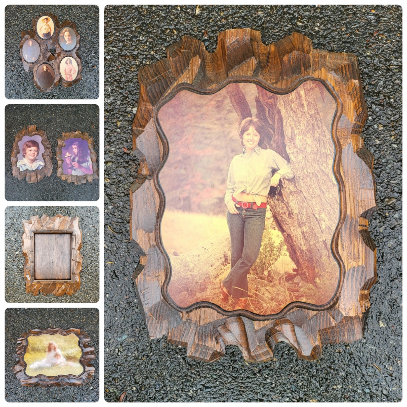 Lot # 54 - Vintage Chiseled Wood Photo Plaques 1970's