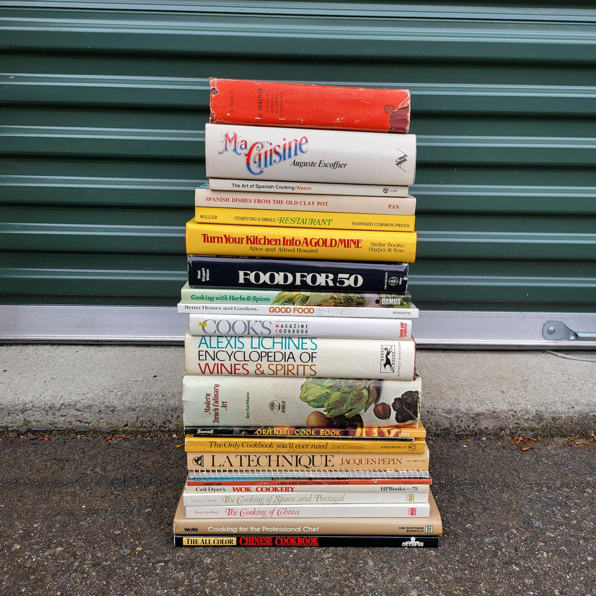 1960's-1980's various titles cookbooks. Some of the titles include: Sixth Edition Food For Fifty, Ma Cuisine, Herbs & Spices, Better Homes Good Food & Fitness, Spanish Cooking, Chinese Cookbook, El Practico, Modern French Culinary, Wines & Spirits, Wok Cooking, Cooking for the Professional Chef and more.