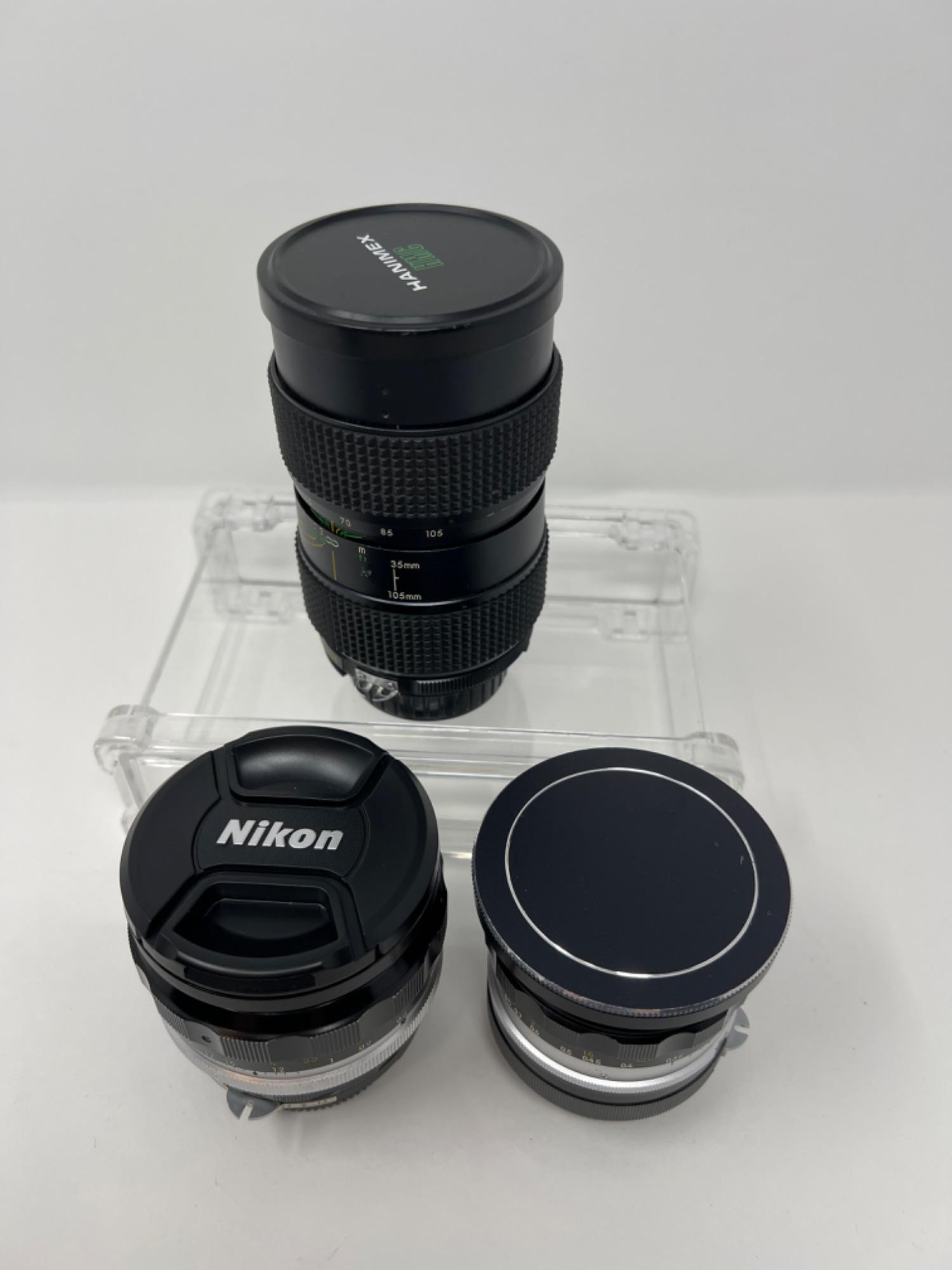 Lot Includes - Nikon Lens Nikkor-S 1:1.2 F=55mm - Nikon Lens Nikkor-NC 1:2.8 F=24mm -Hanimex Zoom Lens 1:3.5 F=35 - 105mm ELIGIBLE FOR SHIPPING