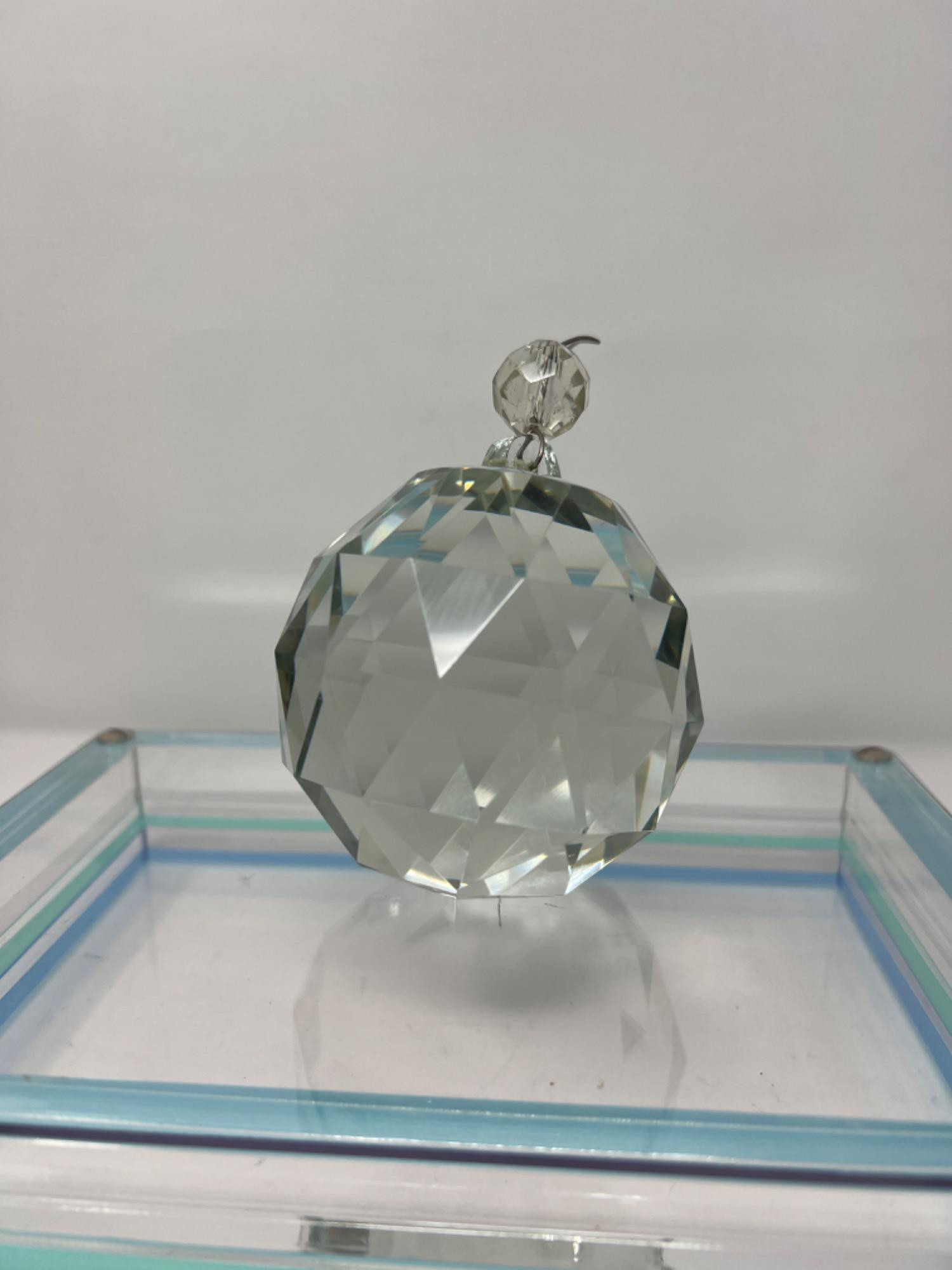 Solid crystal diamond/triangle cut glass ball. 3.5” diameter. ELIGIBLE FOR SHIPPING.