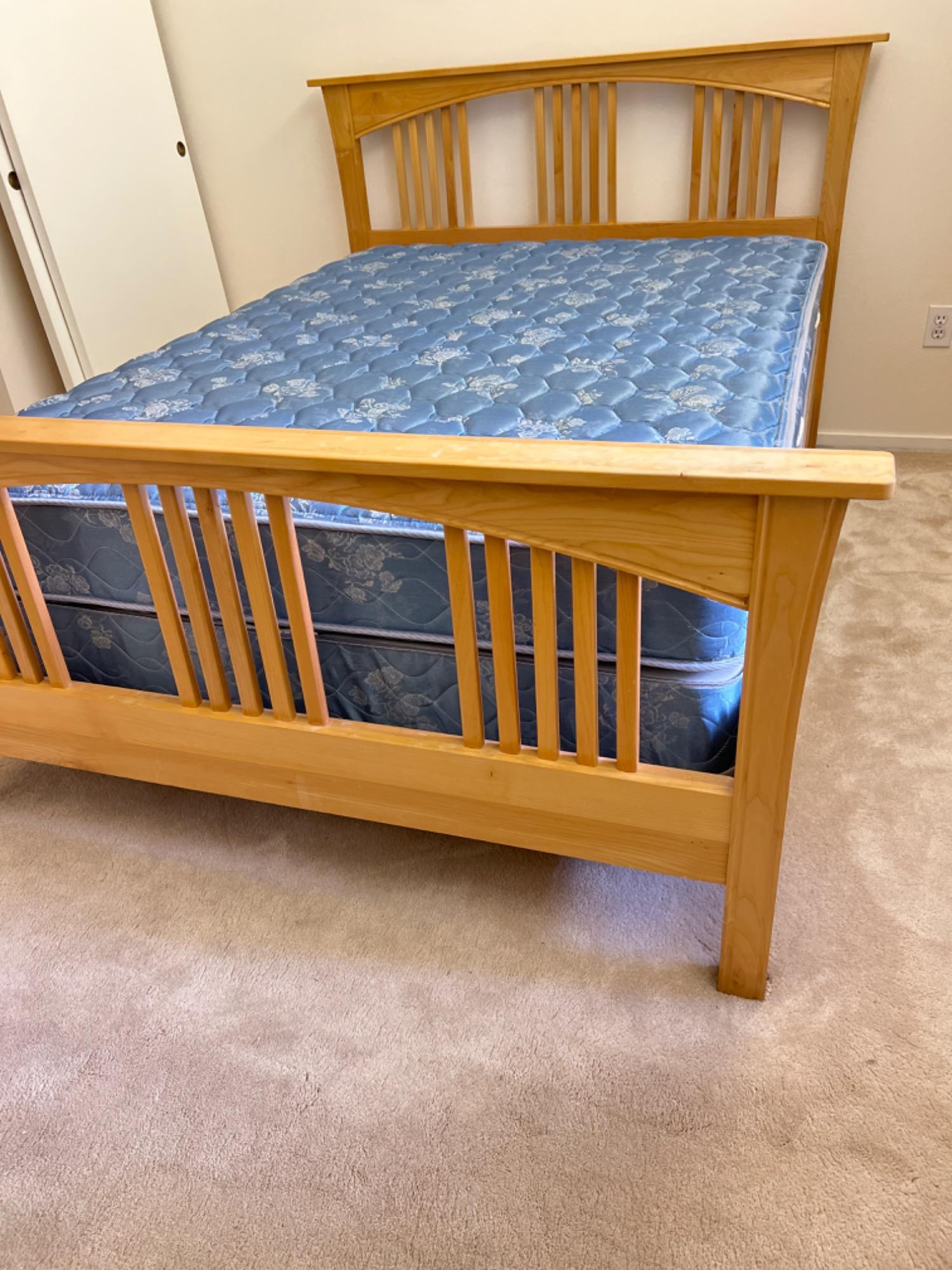 Lot # 12 - Full Size Light Maple Wood Bed with Serta Mattress