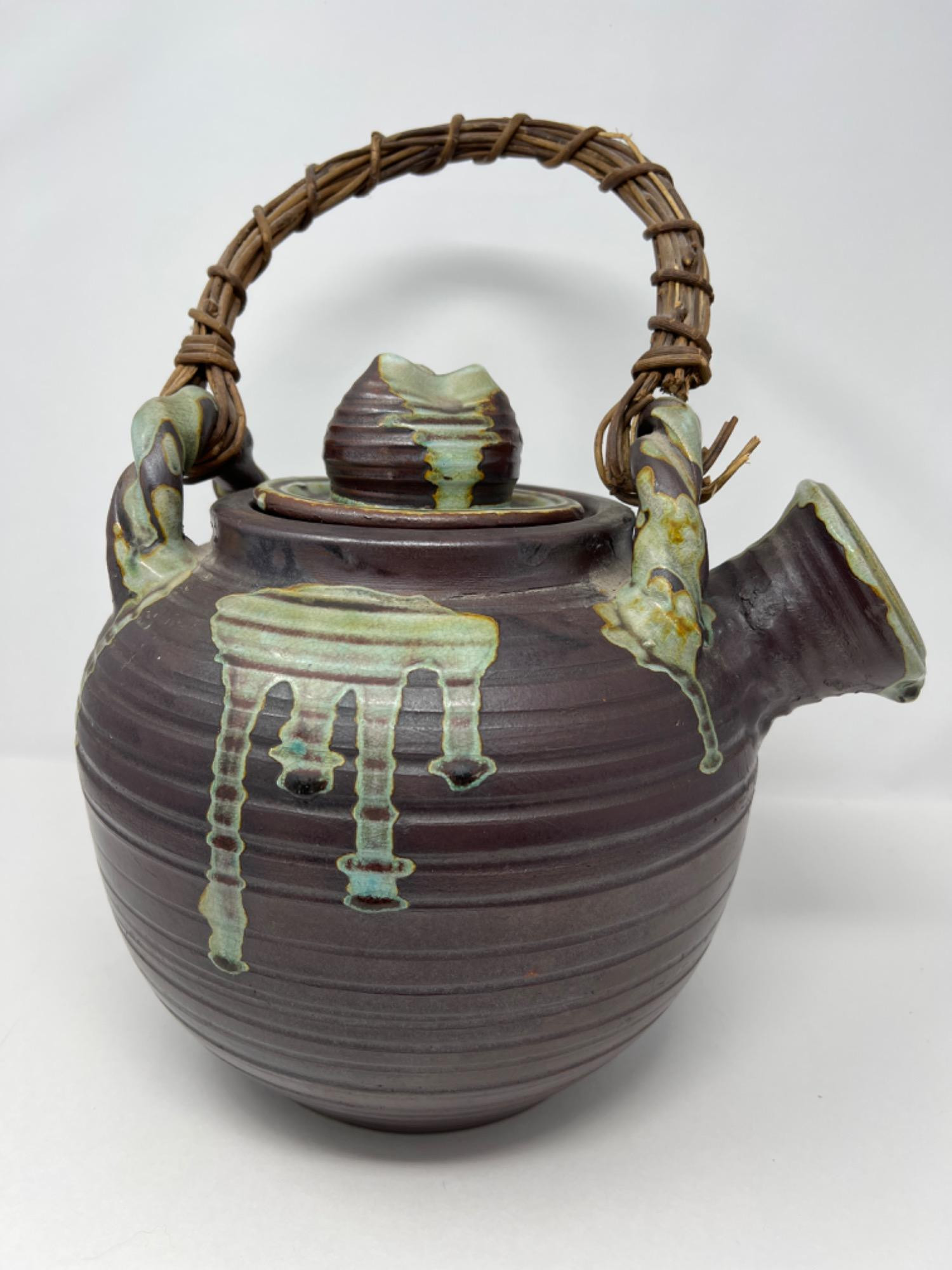 Antique ceramic teapot 10” tall by x 10” round, Japanese heavy pottery.